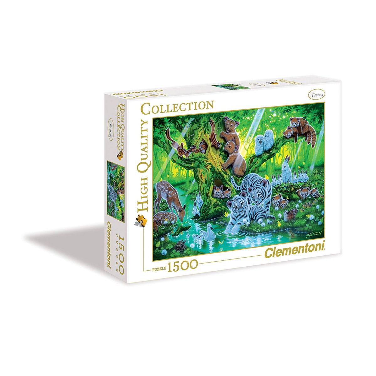 Zvířátka na stromě jsou jedním z puzzle obrázků řady Fantasy, který si mohou děti poskládat z 1500 dílků. Kvalitní tisk jim zaručuje ve výsledku krásný obrázek sytých a plných barev. Po složení je puzzle výbornou dekorací pokojíku.
