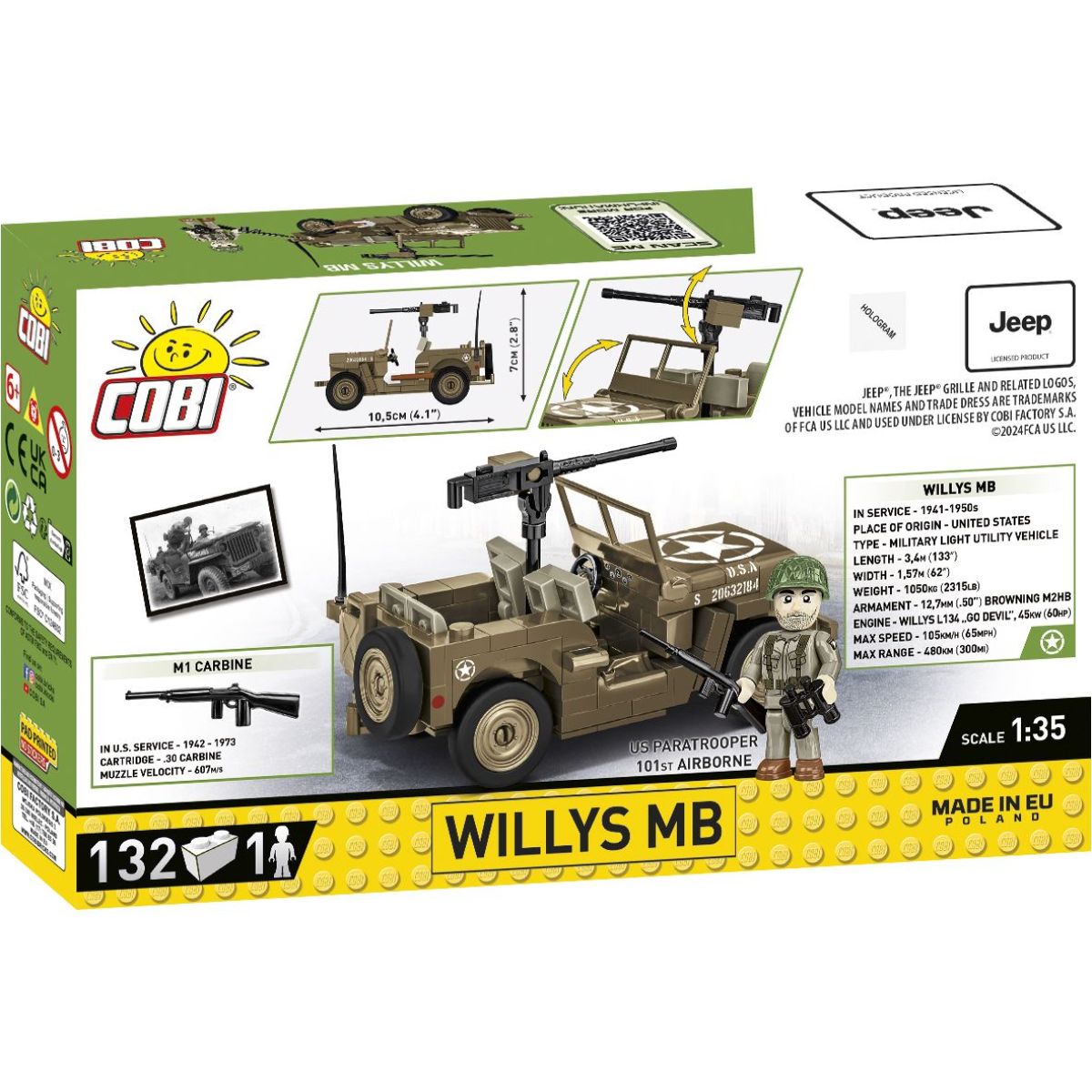 Ponorte sa do histórie druhej svetovej vojny so stavebnicou Cobi 3133 Willys MB! Postavte si model obľúbeného terénneho vozidla Jeep z 132 dielikov v mierke 1:35. Vozidlo má pohyblivé kolesá s gumovými pneumatikami a je vybavené ťažkým guľometom – presne ako originál! Súčasťou je aj figúrka vojaka americkej výsadkovej divízie "Screaming Eagles" s výraznými orlími nášivkami na ramenách. Zažite vzrušenie z budovania histórie!