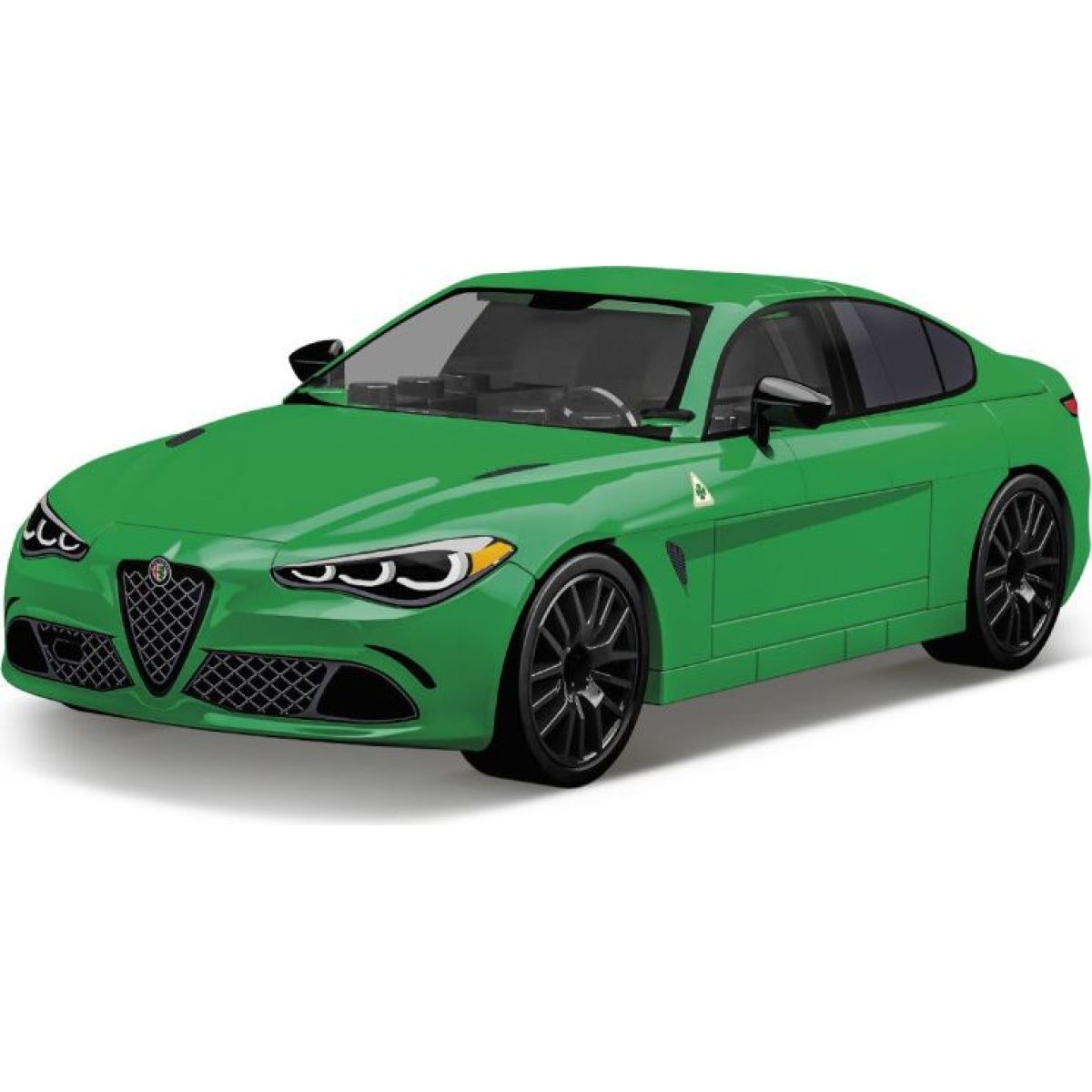 Alfa Romeo Giulia Quadrifoglio v zelenom prevedení je námetom pre model, ktorý si môžu chlapci zostaviť z obľúbenej stavebnice Cobi.