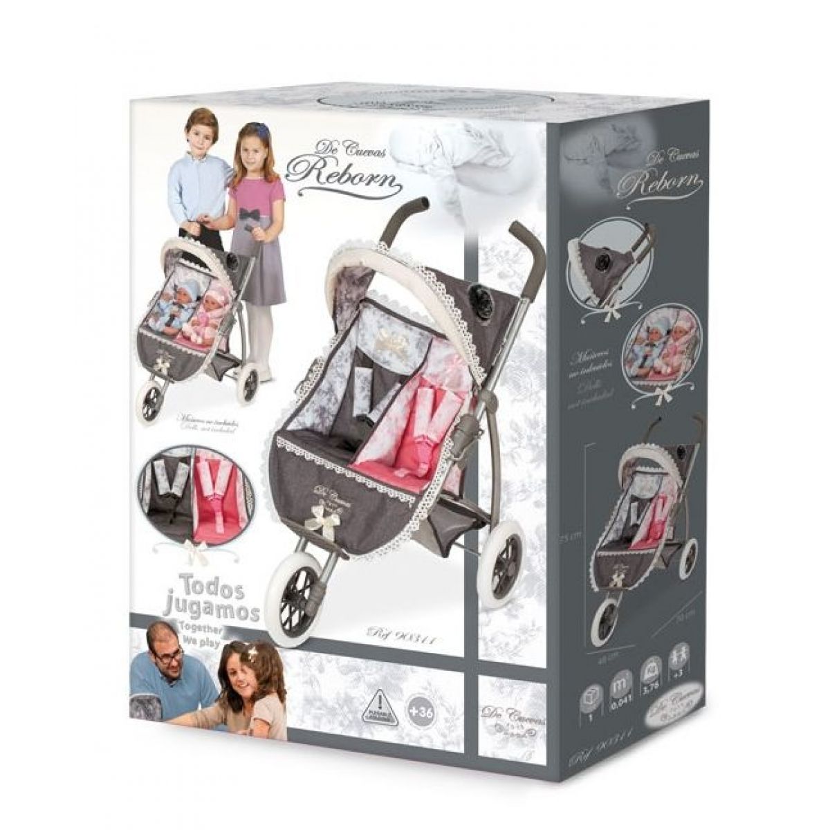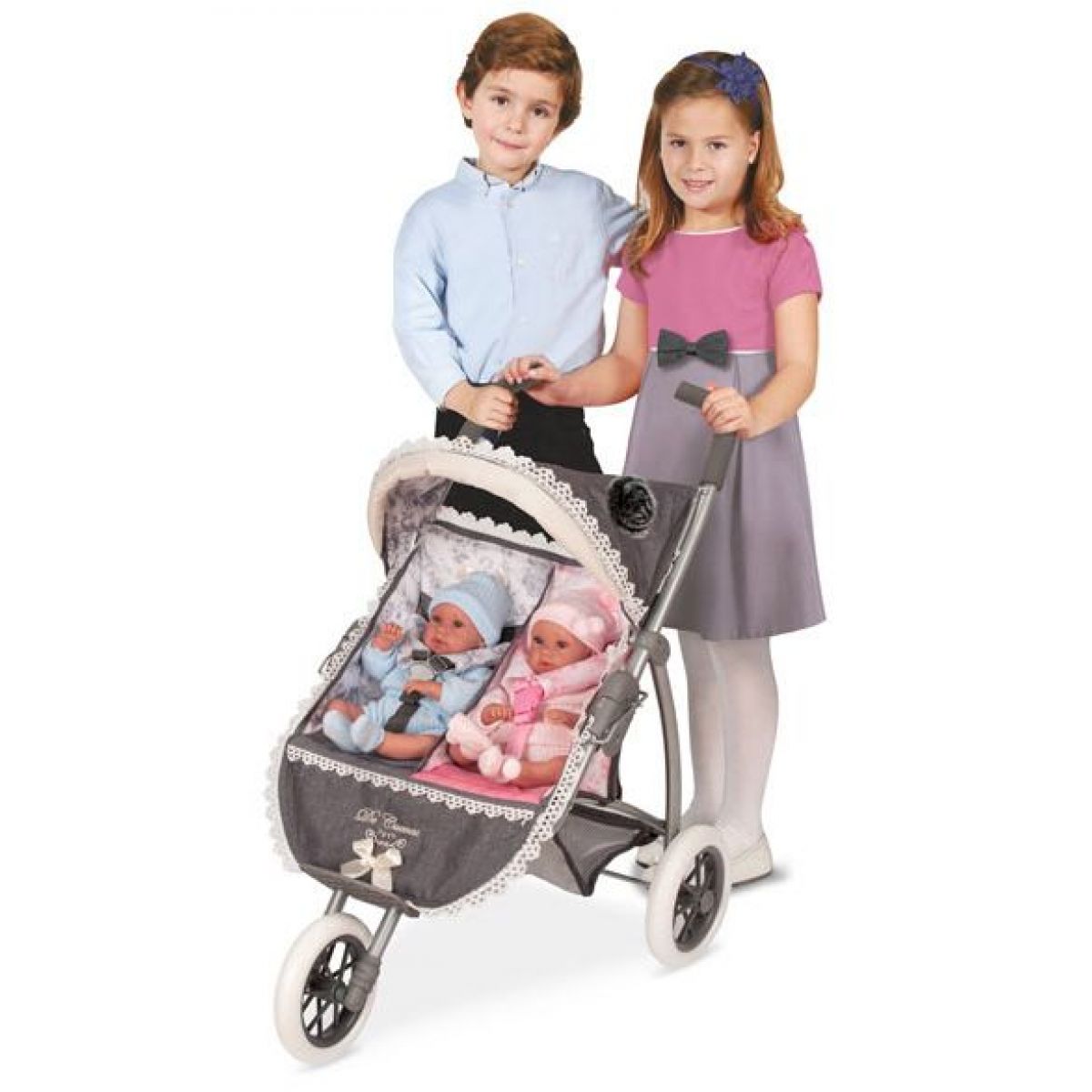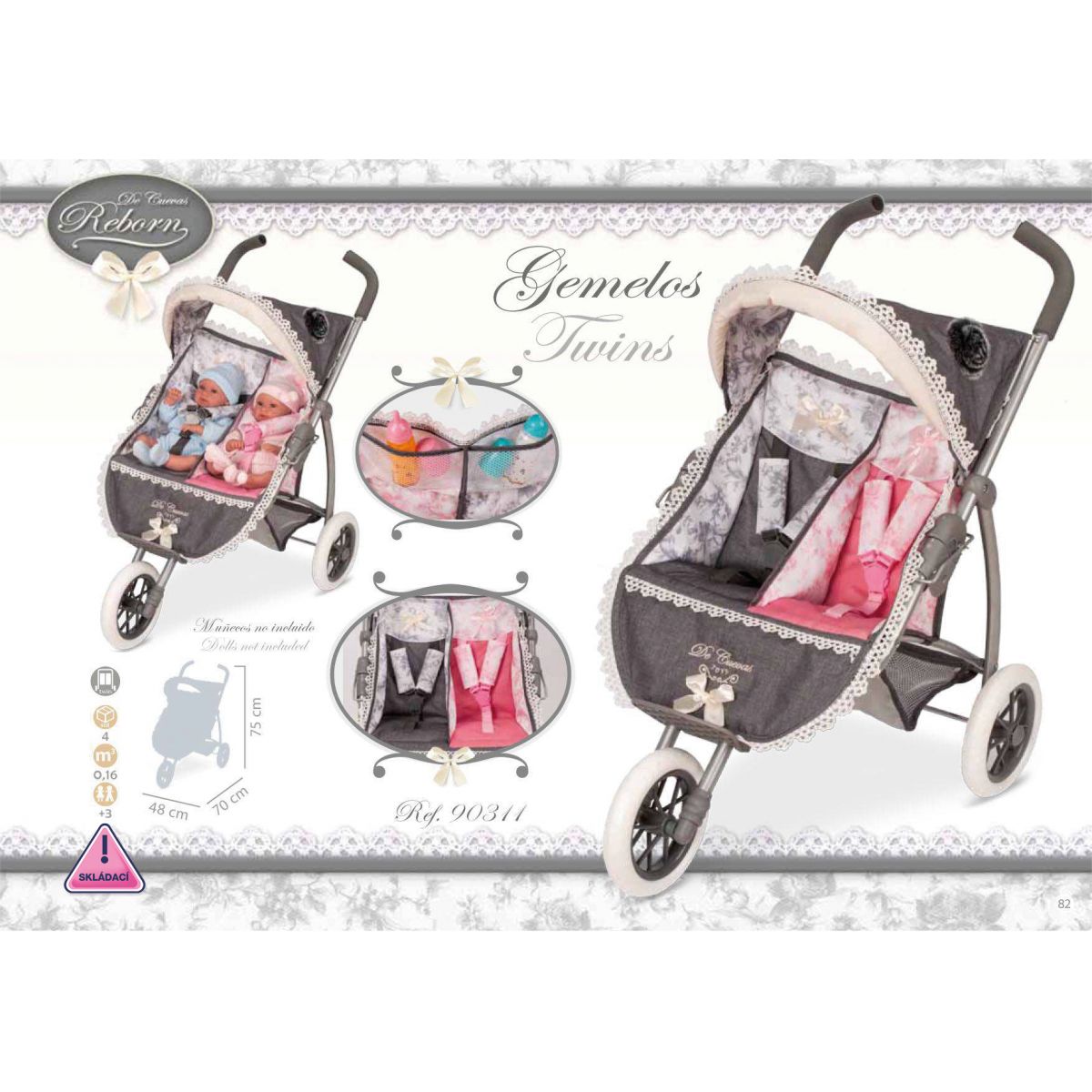 DeCueavas Skládací kočárek tříkolový pro dvojčata panenky