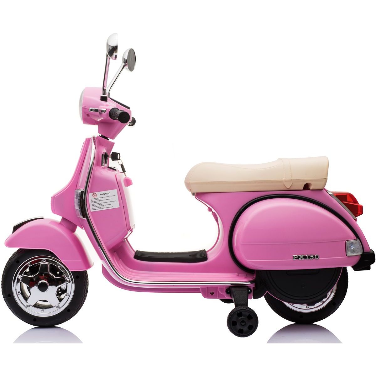 Detská elektrická kolobežka Vespa PX150 v pôvabnej ružovej farbe je perfektným spoločníkom pre malé objaviteľky a objaviteľov od 3 rokov. Jednoduché ovládanie pomocou pedála umožňuje bezpečne regulovať rýchlosť aj smer jazdy. Vďaka tlmiču nárazov si deti užijú pohodlnú jazdu aj na nerovných povrchoch a zásuvka pre MP3 prehrávač spríjemní každú cestu obľúbenou hudbou. Výkonná batéria (12V4,5A) zabezpečuje dlhý čas zábavy bez prestávok. Štýlový dizajn inšpirovaný klasickou Vespou robí tento elektrický skúter ešte atraktívnejším.