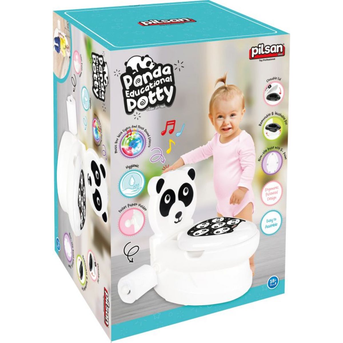 Biely nočník s motívom pandy v podobe WC záchodovej misy. Je príhodným prechodom medzi nočníkom stojacim na zemi a používaním veľkej záchodovej misy v neskoršom veku.