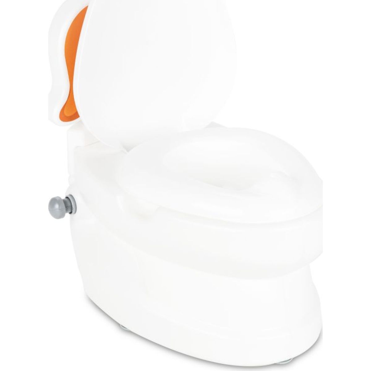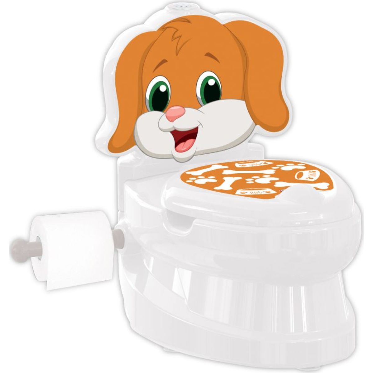 Biely nočník s motívom psíka v podobe WC záchodovej misy. Je príhodným prechodom medzi nočníkom stojacim na zemi a používaním veľkej záchodovej misy v neskoršom veku.