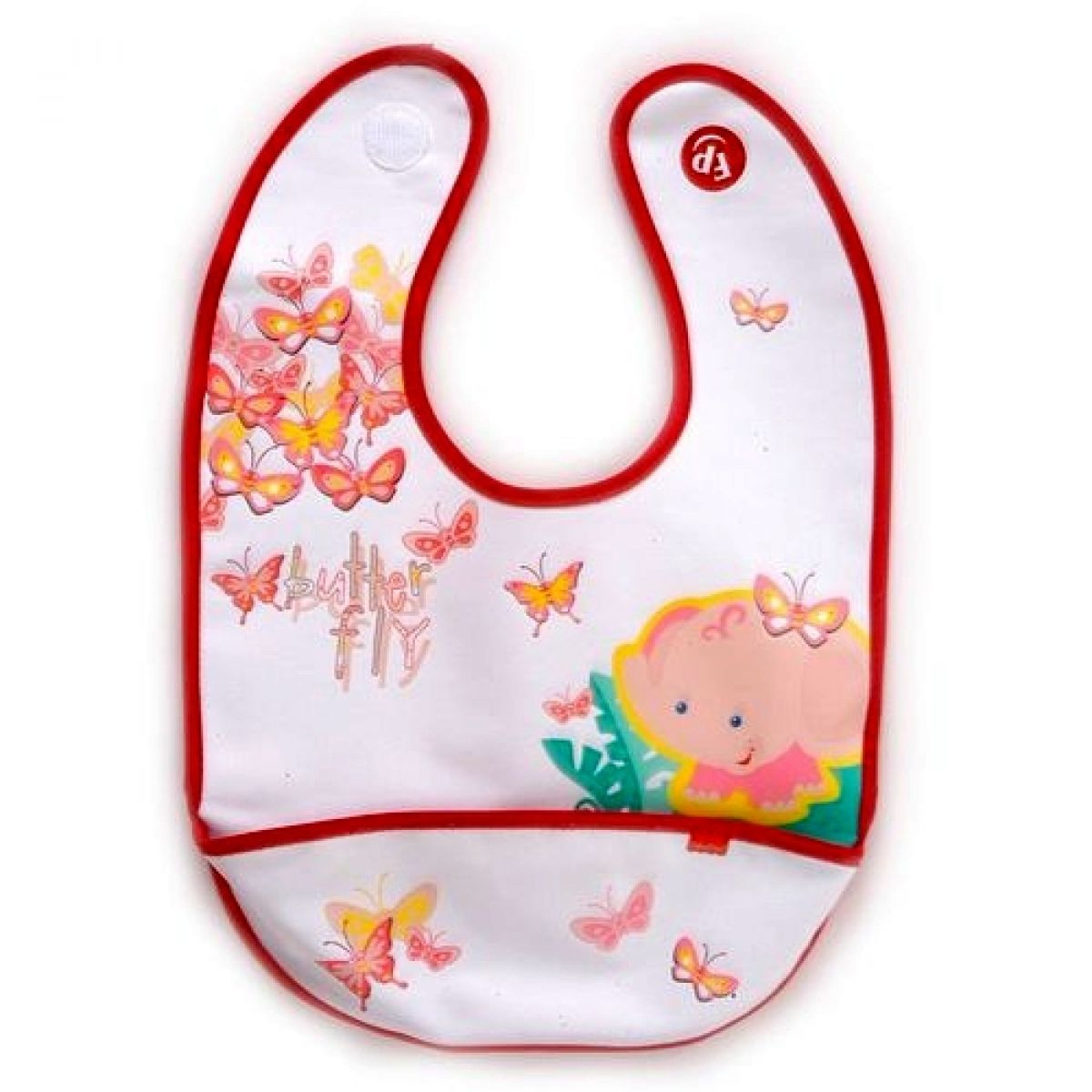 Obrázkové bryndáky pro batolata Fisher-PriceTM jsou vyrobeny z vysoce kvalitního omyvatelného materiálu. Má jemné zapínání na háček u krku. V dolní části má kapsu, která zachytí padající jídlo a rozlitou tekutinu a jsou na něm barevné motivy roztomilých zvířátek z deštného pralesa.