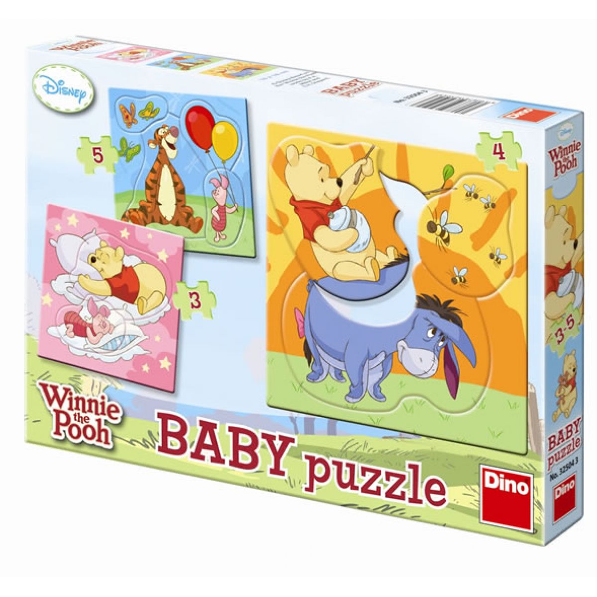 Pojďte si připomenout Medvídka Pú a jeho kamarády. Baby puzzle je určen pro nejmenší děti, aby mohli svoje první skládání vyzkoušet hned na třech puzzle v této sadě.
