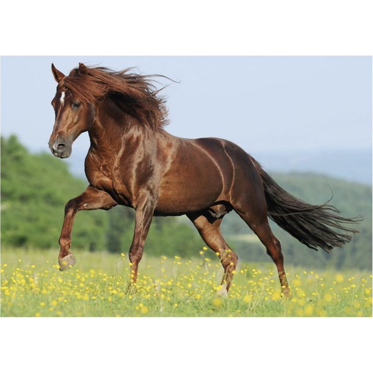 Kôň na lúke je motívom puzzle obrázku, ktorý si môžu deti zostaviť z 500 puzzle dielikov.