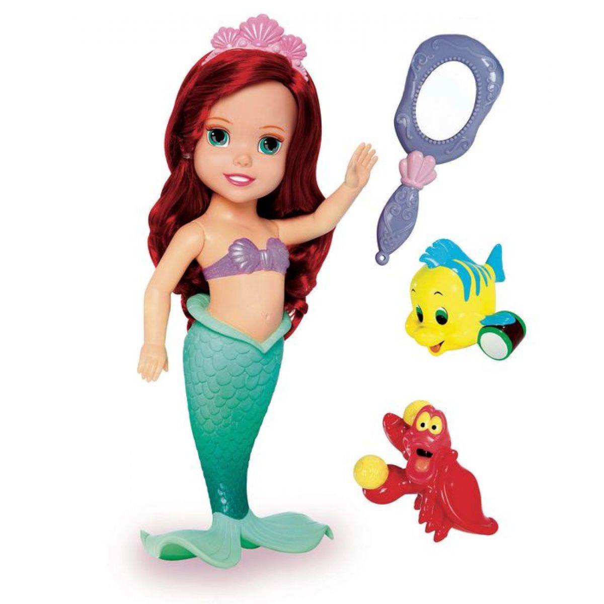 Součástí balení jsou i její přátelé, Flounder a Sebastian, kteří mohou stříkat vodu. Dále v balení naleznete korunku a kartáč na česání, který má na sobě také zrcátko.
