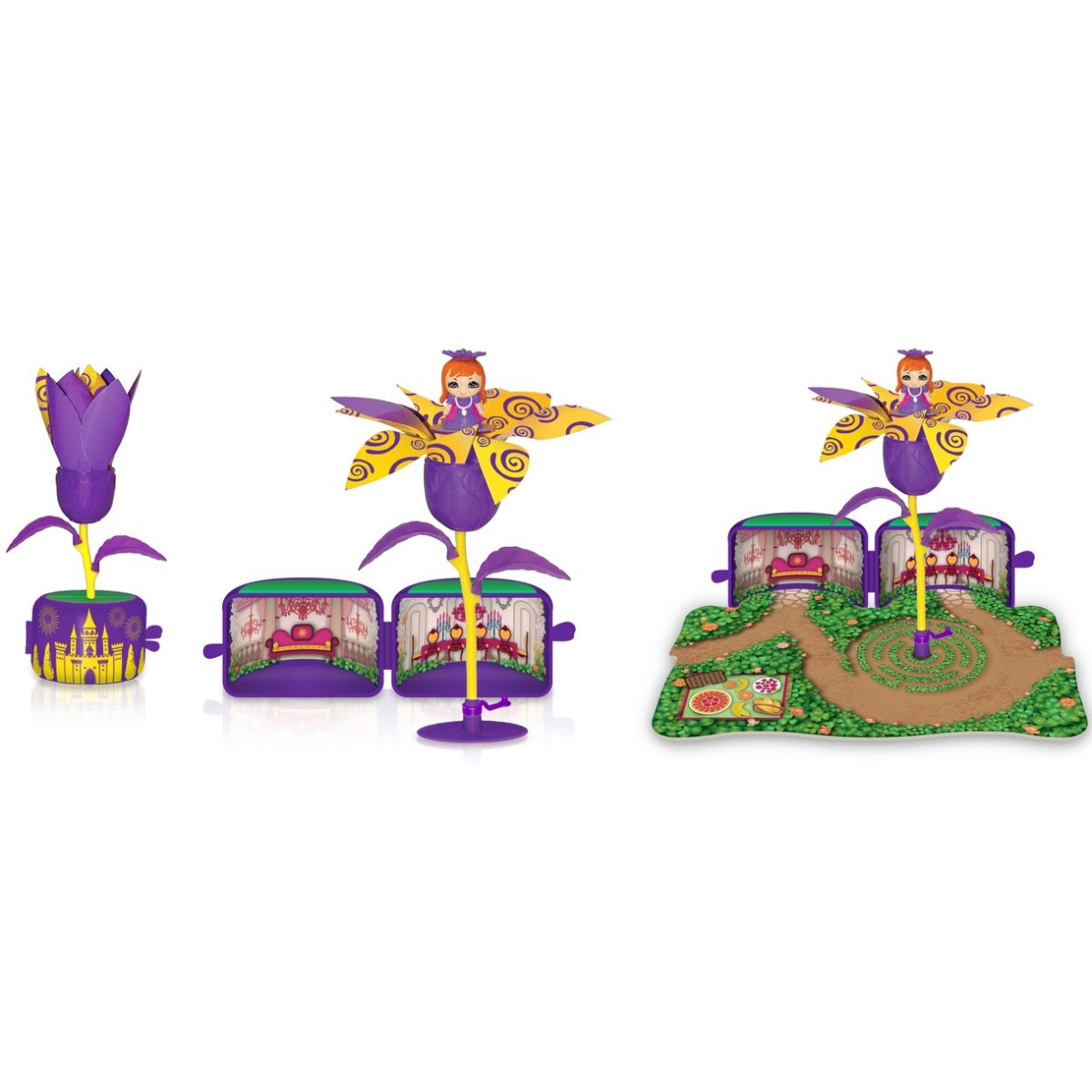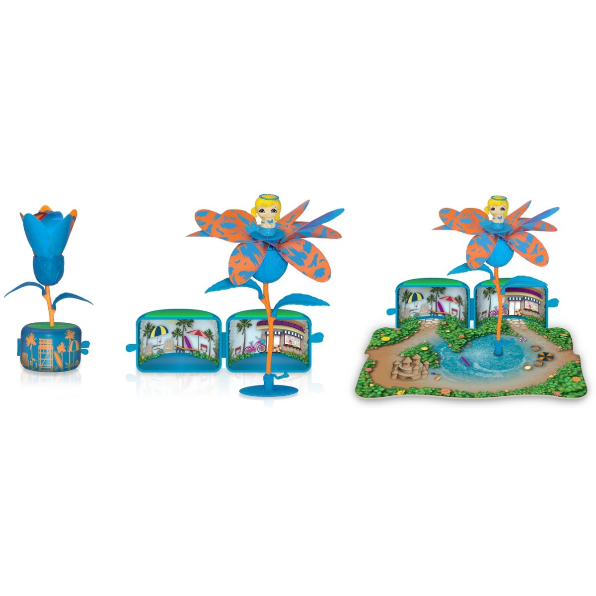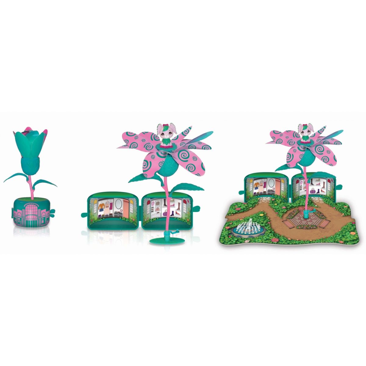 V každom kvetináči sú farebné obrázky ako z domčeka a navyše veľké sady obsahujú hraciu plochu v podobe malebnej záhradky. Kvetináčiky možno povoziť na stonke ako na kolotoči.