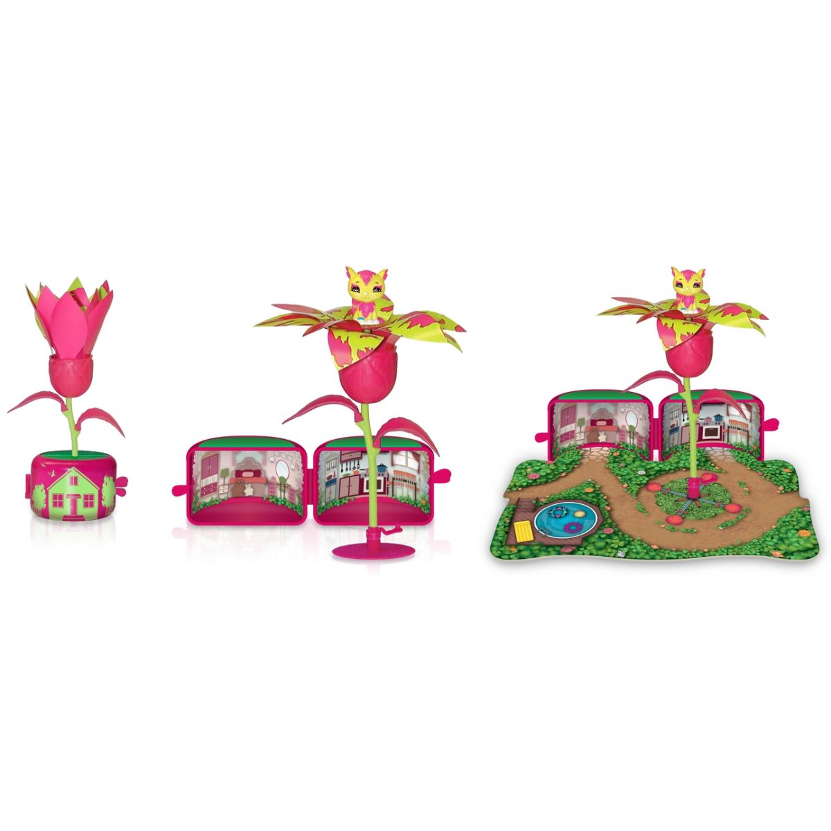 Po otvorení kvetináče sa objaví farebný svet Flora Magica. Vystrihnite si farebnú záhradku z blistra a vložte do jej stredu kvetinu a vytvorte si úžasnú hraciu sadu.