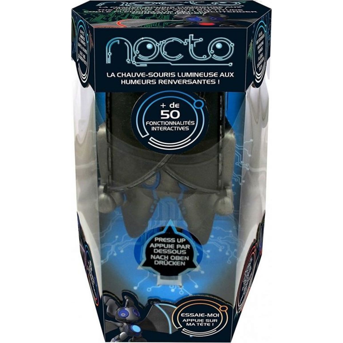 Interaktivní pohodový společník, který si s dětmi rád zahraje čtyři hry, umí jim zatancovat a reaguje na jejich podněty. Má přes 50 interaktivních funkcí. Jeho křídla jsou pohyblivá, umí s dětmi létat. Pokud s ním děti nezacházejí hezky, místo létání s ním dělají salta nebo navolí nevhodnou hudbu pro tancování, Nocto může přestat být milým kamarádem. Projevuje se šesti odstupňovanými náladami, kdy dokáže sdělovat svoje pocity pomocí změny barev očí a změny světel na křídlech.