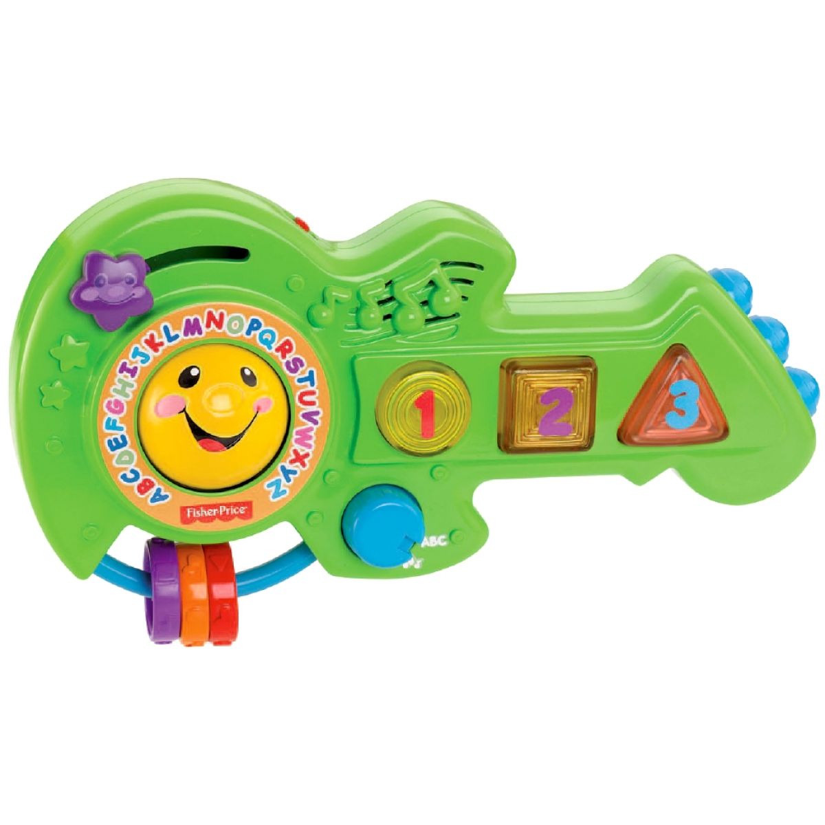 Stisknutím kteréhokoliv ze tří svítících tlačítek se spustí písničky, melodie a zábavné věty. Chce-li si dítě hrát ještě víc, může posouvat rockovou hvězdu a hrát si s klapajícími korálky, jež podporují rozvoj jemné motoriky.
