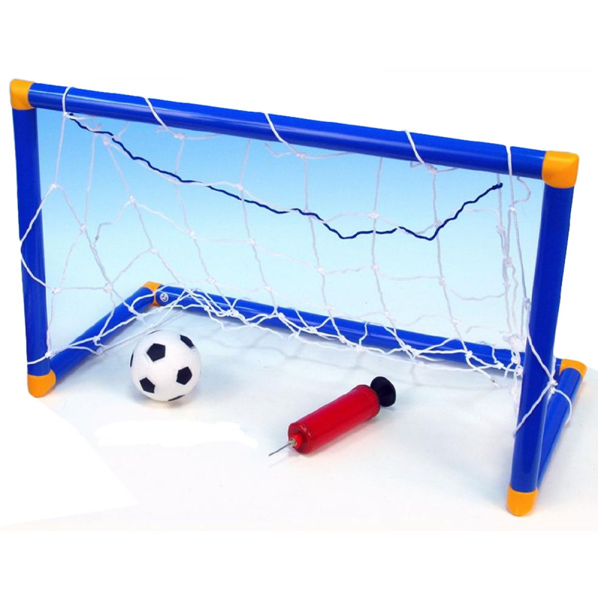 Lehce sestavitelná branka, včetně nafukovacího míčku a pumpičky.