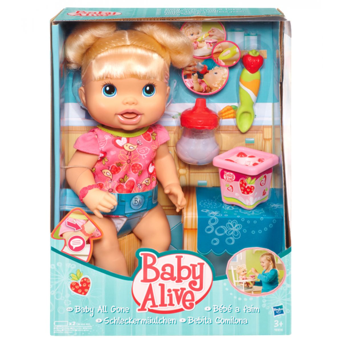 Tuto panenku mohou holčičky nakrmit jogurtem z hrníčku a dívat se, jak se jogurt “ztrácí”. Pokud je ještě hladová, je potřeba lžičku vrátit do hrníčku a jogurt