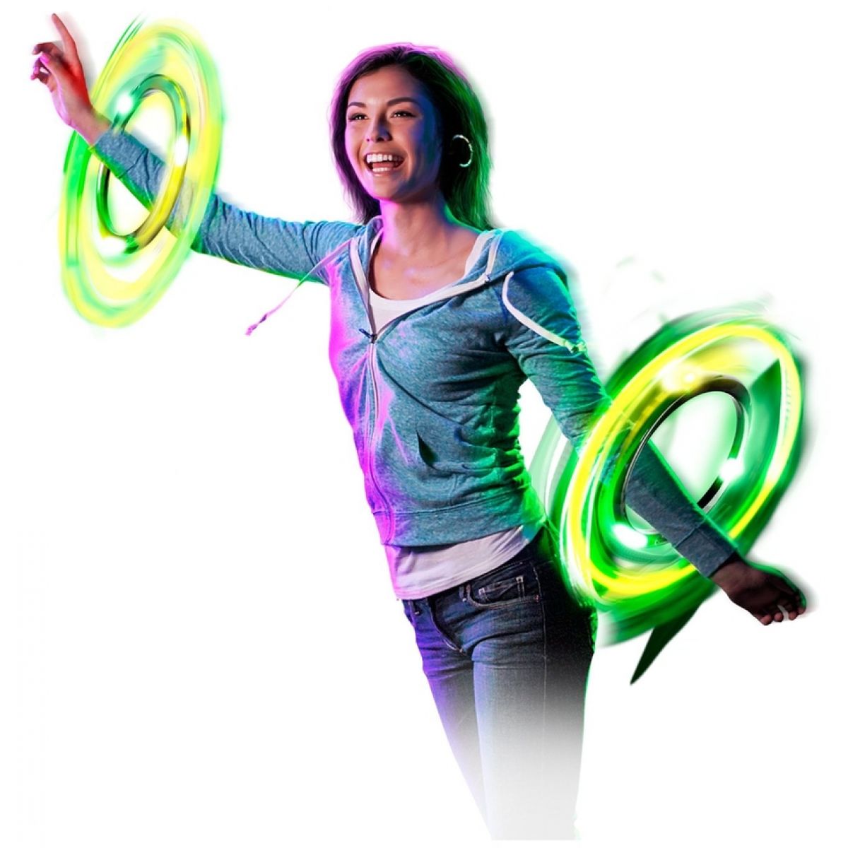 Světelné taneční obruče určené pro 1 až 2 hráče . Během točení obruče mění barvu (4 druhy).