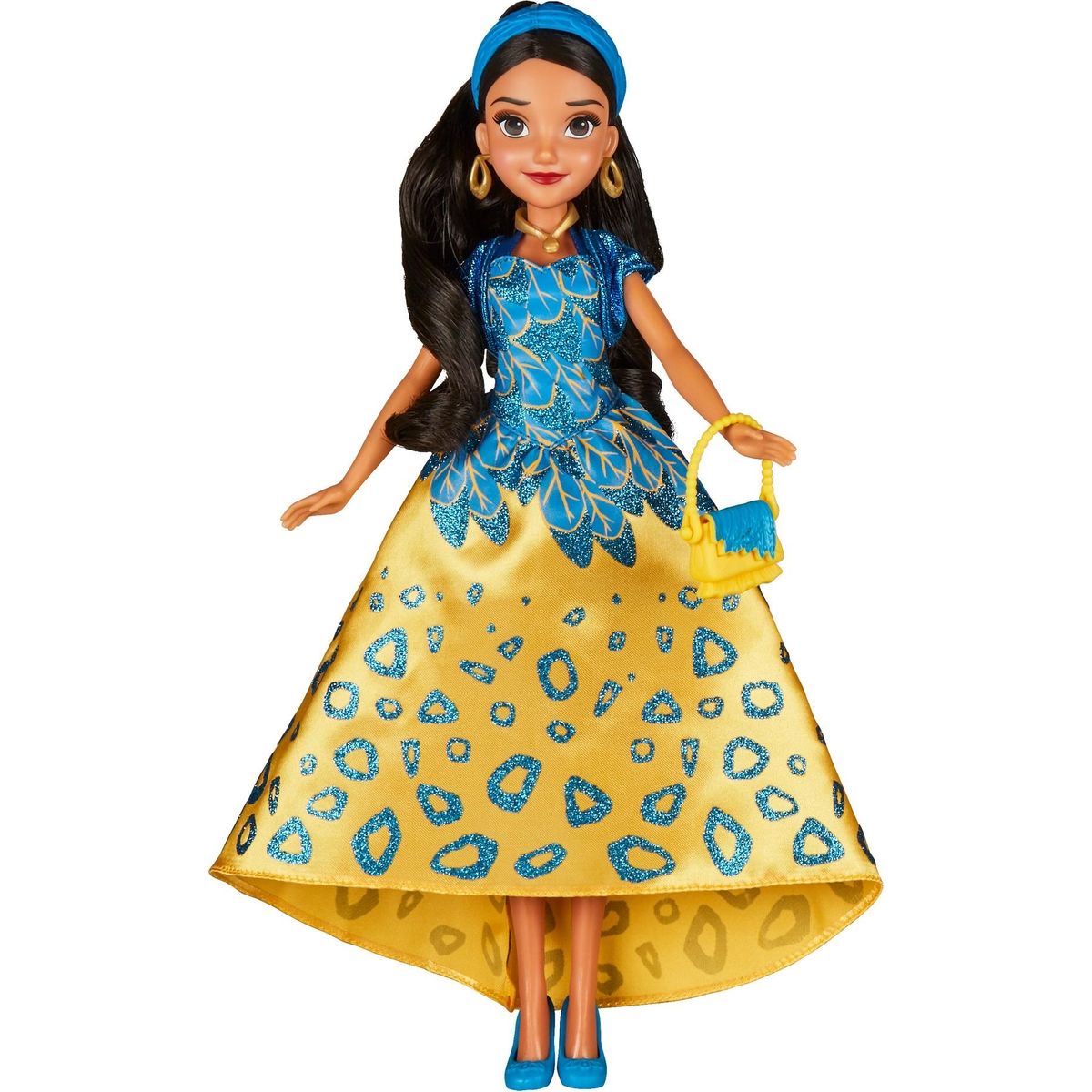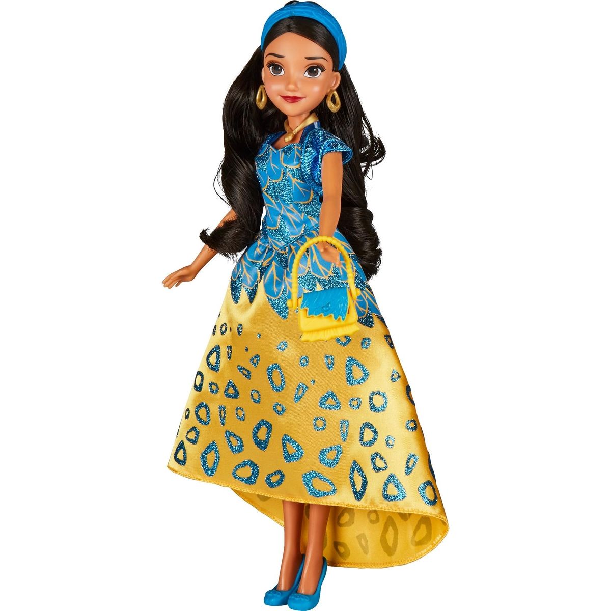 Princezna Elena z Avaloru v nádherných žlutomodrých šatech. Princezna je připravena vládnout svému magickému království.