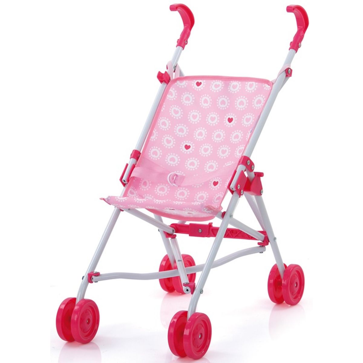 Srdíčka jsou motivem na krásných golových holích pro panenky. Tento sporťák s plastovými kolečky má kovovou konstrukci, ale přitom je lehounký. Je vhodný pro panenku do 46 cm.
