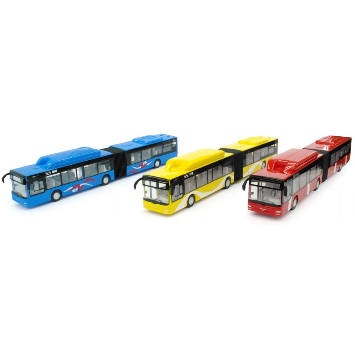 Model autobusu je zpracovaný v měřítku 1:43 a čeká na kluky od 3 let. Bus funguje na setrvačník, je propojen kloubním systémem pro snadnější zatáčení a má mechanické otevírání dvěří. Tramvaj je ve třech barevných provedních dodávaná dle skladové dostupnosti.