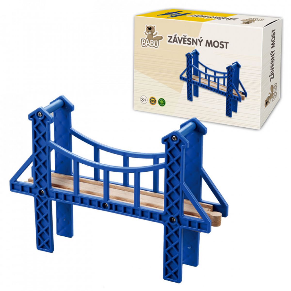 Modrý závesný most pre mašinky je dôležitým stavebným dielikom pre rozšírenie vláčikodráhy. Zapadá do Vláčikodráhy ako sú Maxim, Brio, Bino, Herose, Thomas a stal sa tak univerzálnym dielikom spolu s ďalšími doplnkami od Babu. Prinesie do vláčikodráhy ďalší variant vedenia trate.