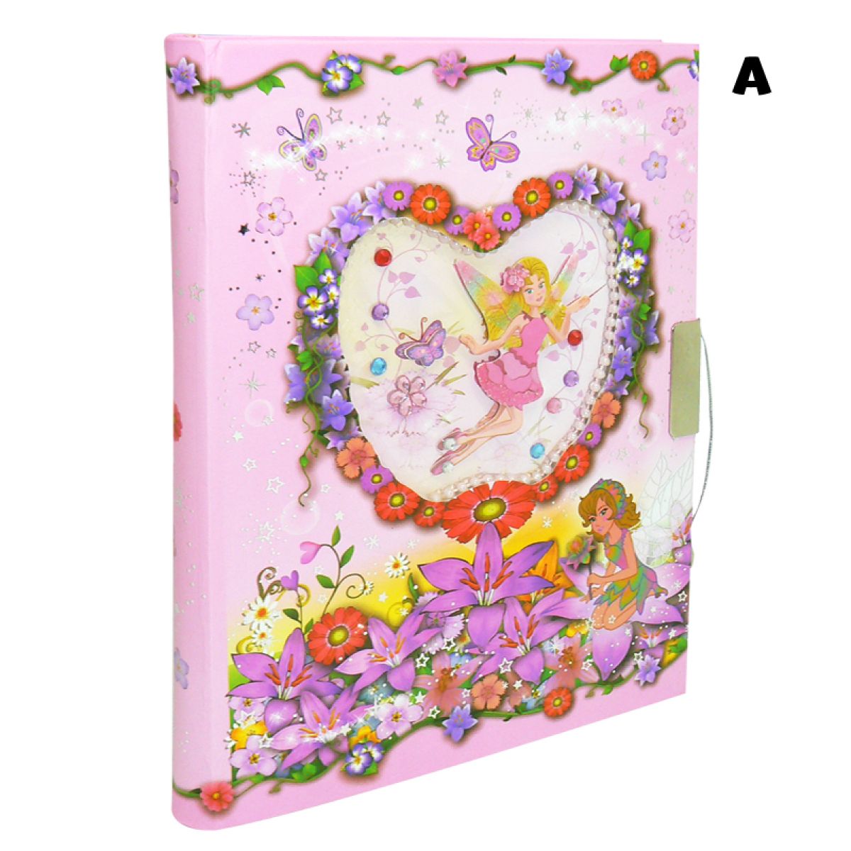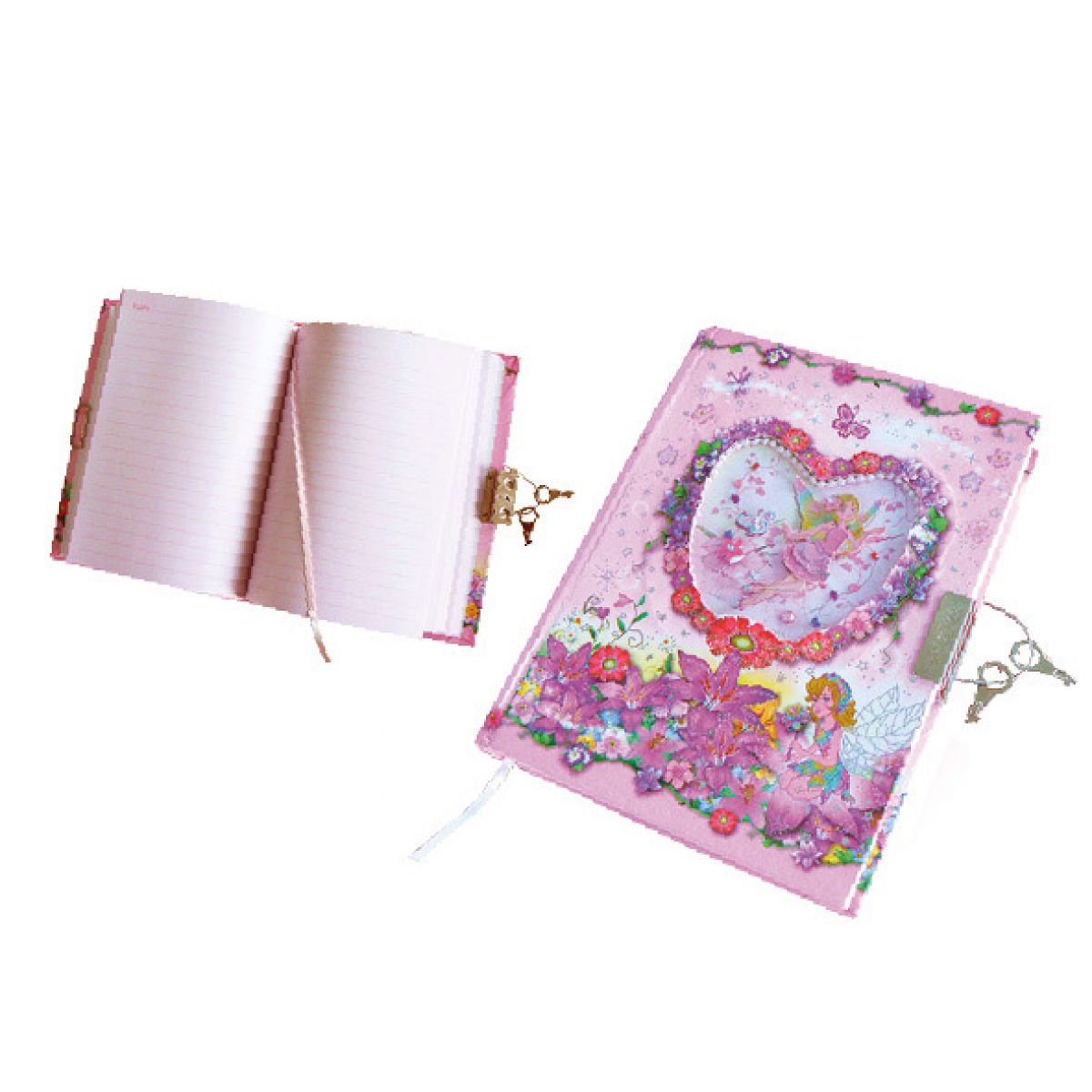 Víla vznášející se v srdíčku je ozdobným prvkem, do růžových barev laděného, poetického deníčku. Ten má zámek, aby ochránil psané tajnůstky před nechtěným čtením.