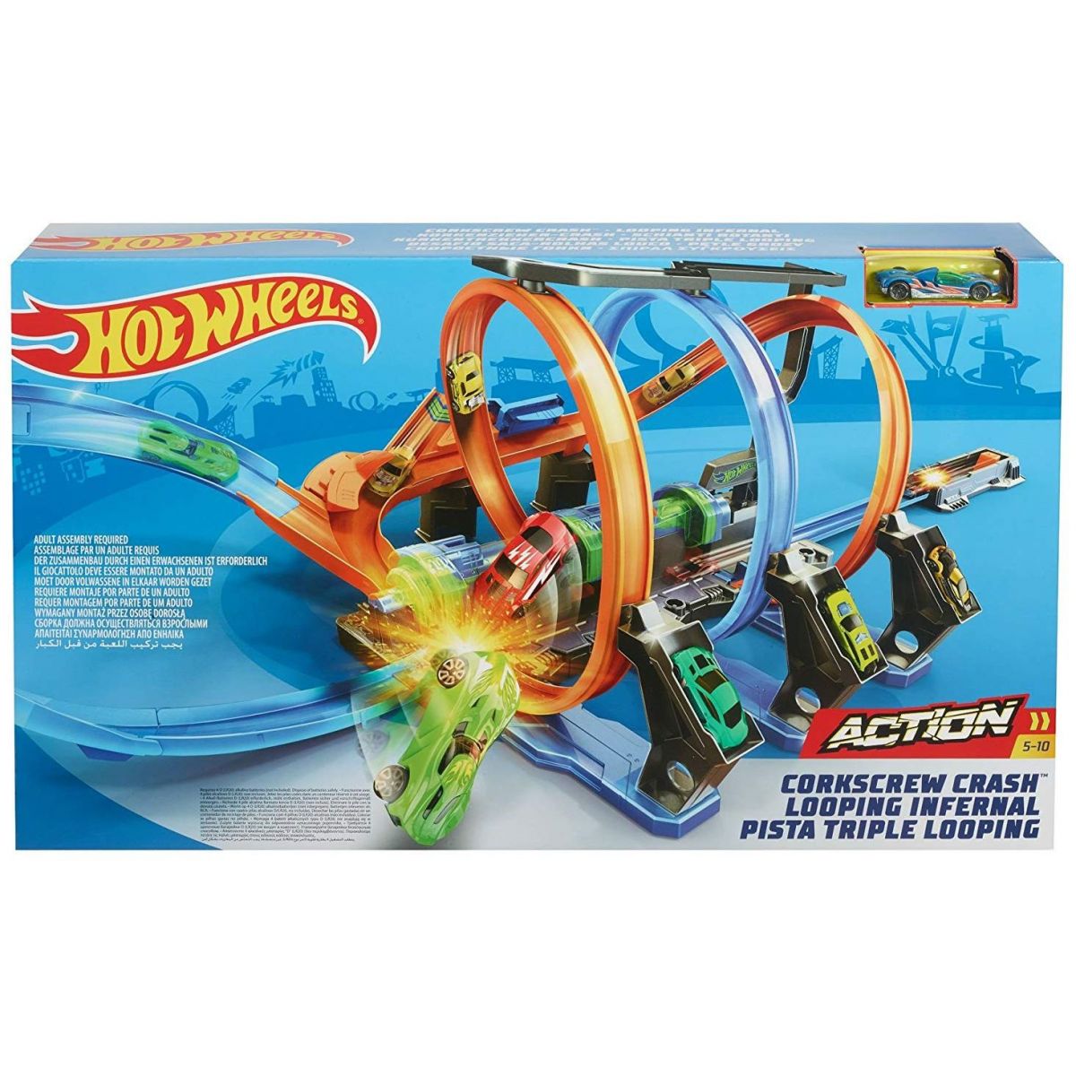 Motorizovaná závodní dráha Hot Wheels® je tentokrát vyrobena ve tvaru spirály.