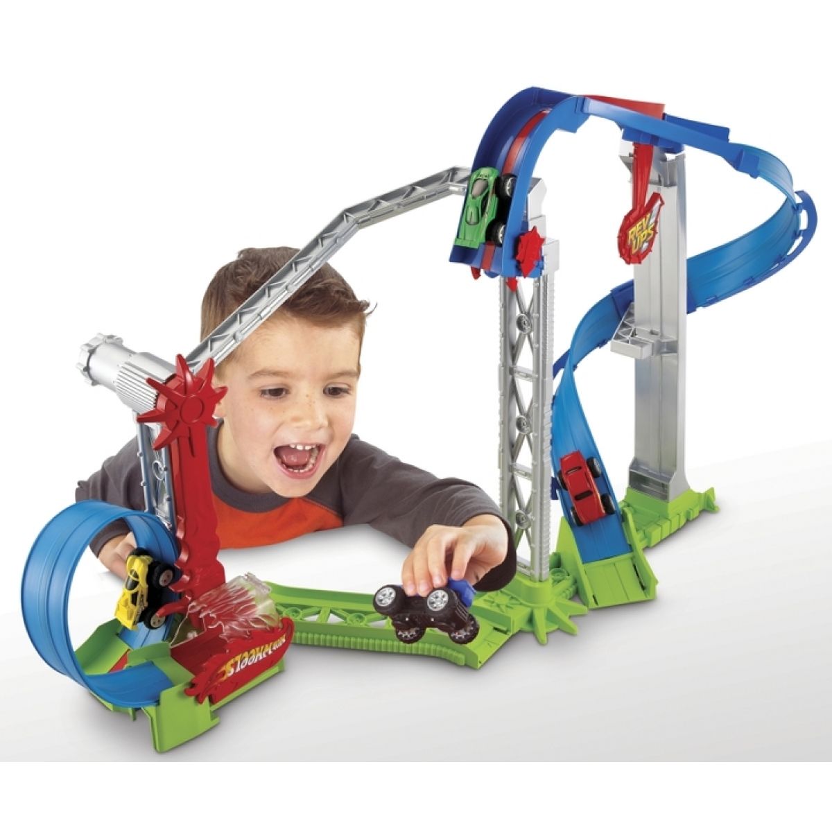 Vzepři se gravitaci jako nikdy předtím s tou největší sadou Rev Ups, která kdy byla vytvořena! V materiálu je obsažen kov, a proto na dráze auta výborně sedí. V sadě najdete mimo jednoho auta Rev-ups i smyčky a výkyvné rameno.
