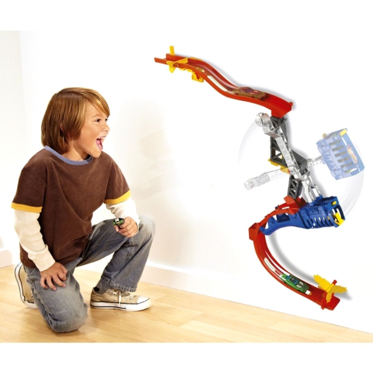 Přemísti svoje auta z podlahy na zeď! S pomocí 3M Command Strips ti 2 úrovňová Jízda po zdi umožní pochlubit se bezpočtem řad všech tvých oblíbených autíček Hot Wheels® na zdi.