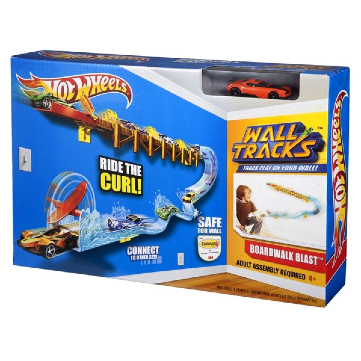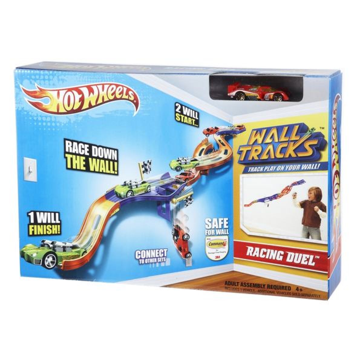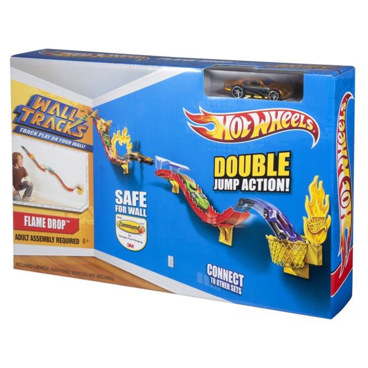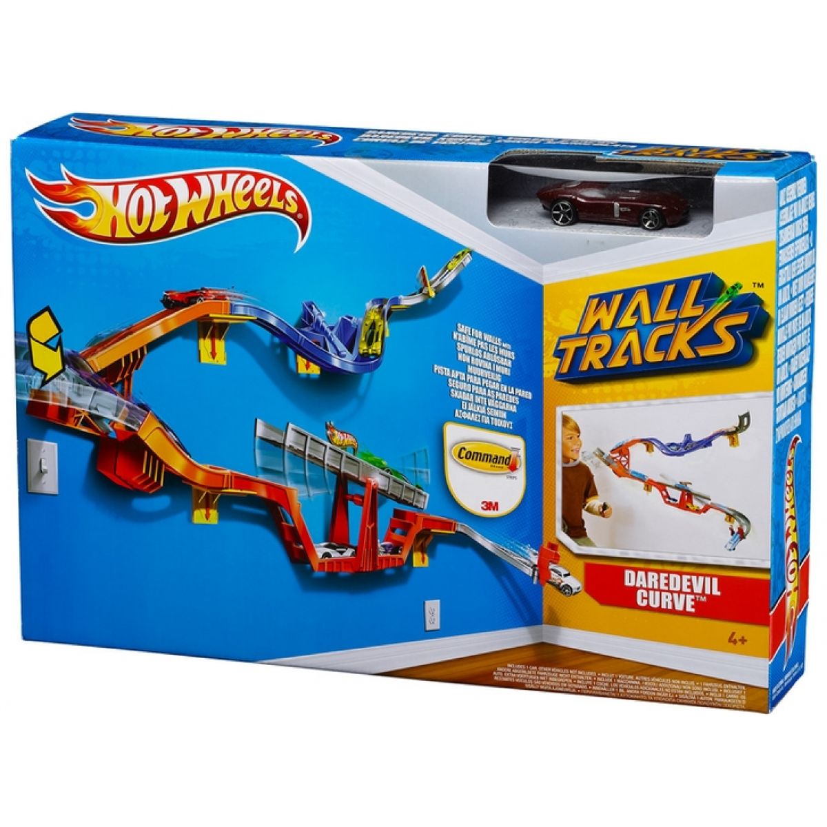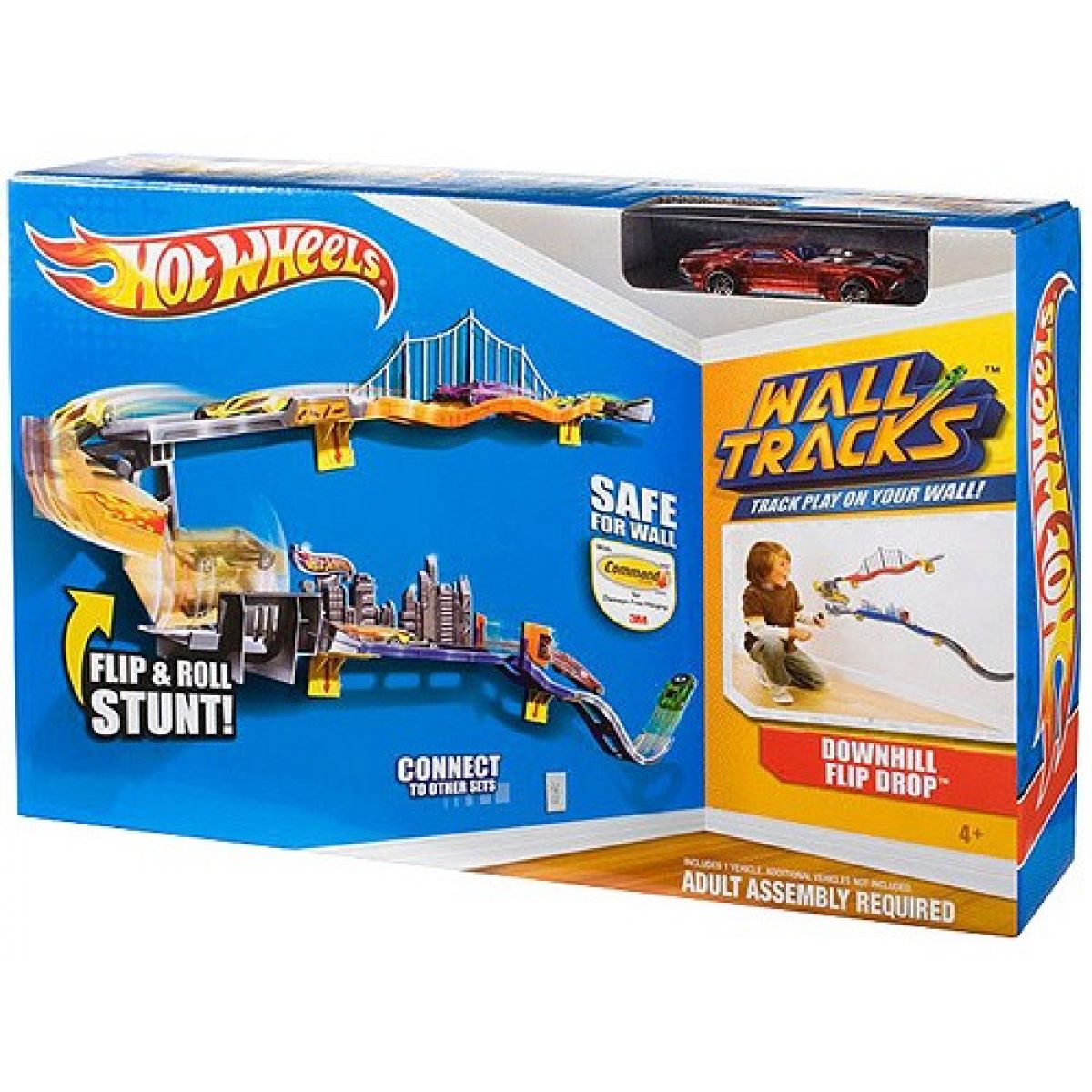 Přemísti svoje auta z podlahy na zeď! S pomocí 3M Command Strips ti 2 úrovňová Jízda po zdi umožní pochlubit se bezpočtem řad všech tvých oblíbených autíček Hot Wheels® na zdi.