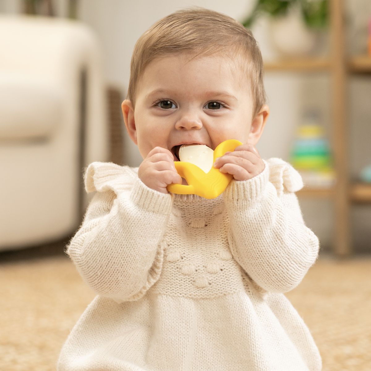 Mäkké a pružné hryzátko v tvare banánu pomáha deťom pri prerezávaní zúbkov a je ľahko uchopiteľné malými ručičkami. Má rozmery 83 x 99 mm a neobsahuje BPA, takže je bezpečné pre vaše najmenšie.