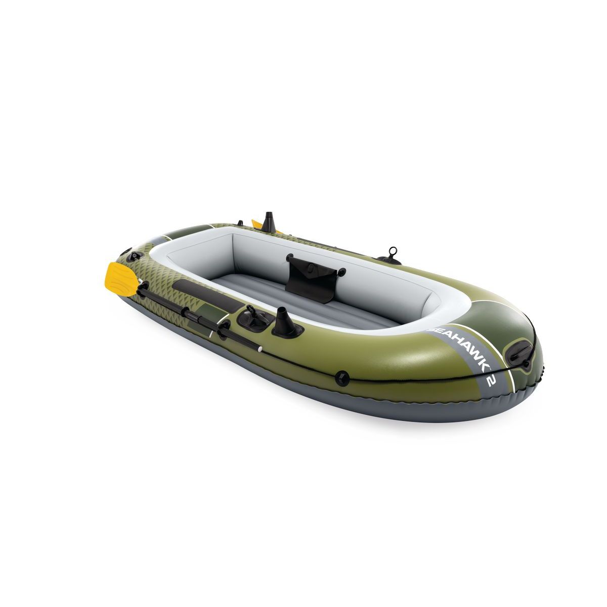 Vyrazte za dobrodružstvom s nafukovacím člnom Intex Seahawk™ 2 (66332NP), ktorý spája bezpečnosť, komfort a praktické detaily pre rybárčenie aj rekreačné plavby. Maskáčový dizajn v zeleno-sivom prevedení zvýrazňuje jeho outdoorový charakter a pripravenosť na akciu.