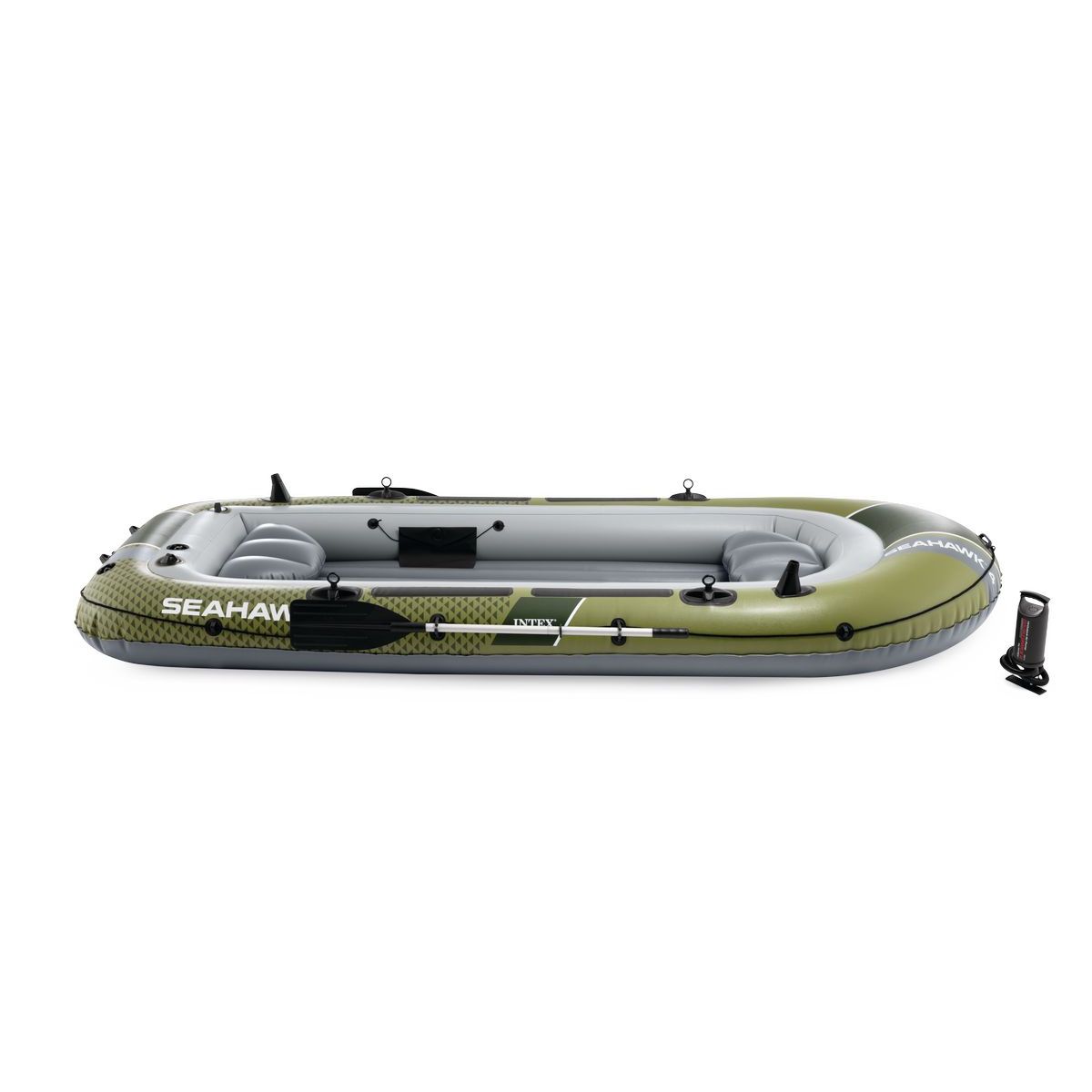 Vyrazte za dobrodružstvom s nafukovacím člnom Intex 66334NP Seahawk™ 4 Boat, ktorý spája bezpečnosť, stabilitu a praktickú výbavu pre rekreačnú plavbu aj rybolov. Tento štvormiestny čln je vyrobený z pevného PVC materiálu odolného voči oderu a nárazom, takže je vhodný na jazero, rieku aj pokojnejšie pobrežné vody.
