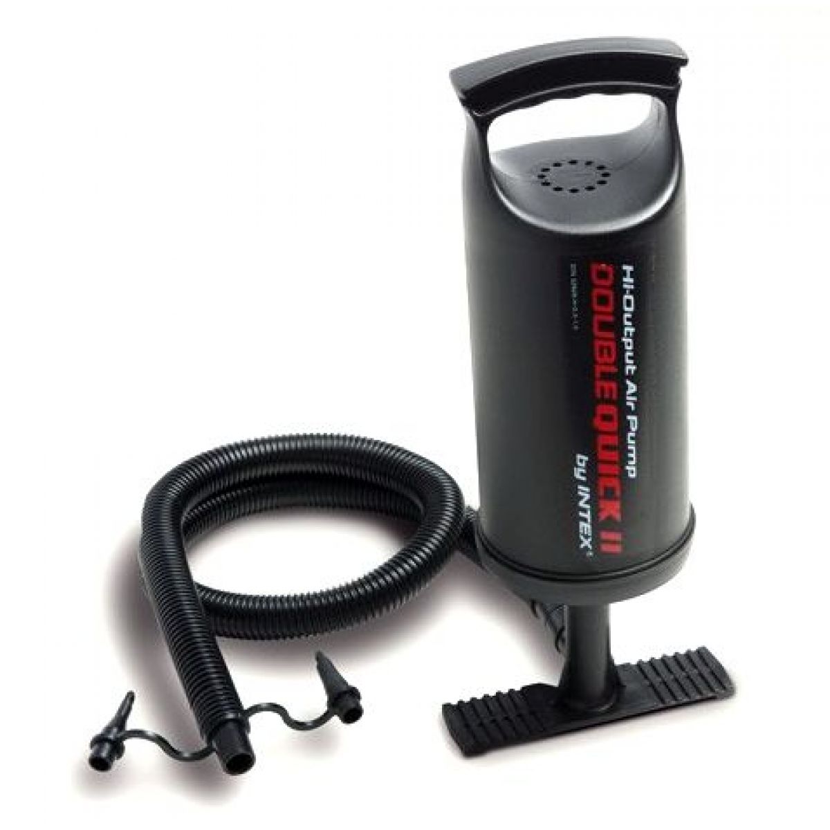 Nafukovací kajak pro dvě osoby včetně pádel a ruční pumpy.