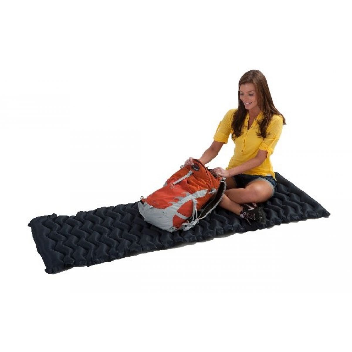 Nafukovací kempinkové lehátko vhodné pro pobyt v přírodě, poslouží jako dočasná postel.