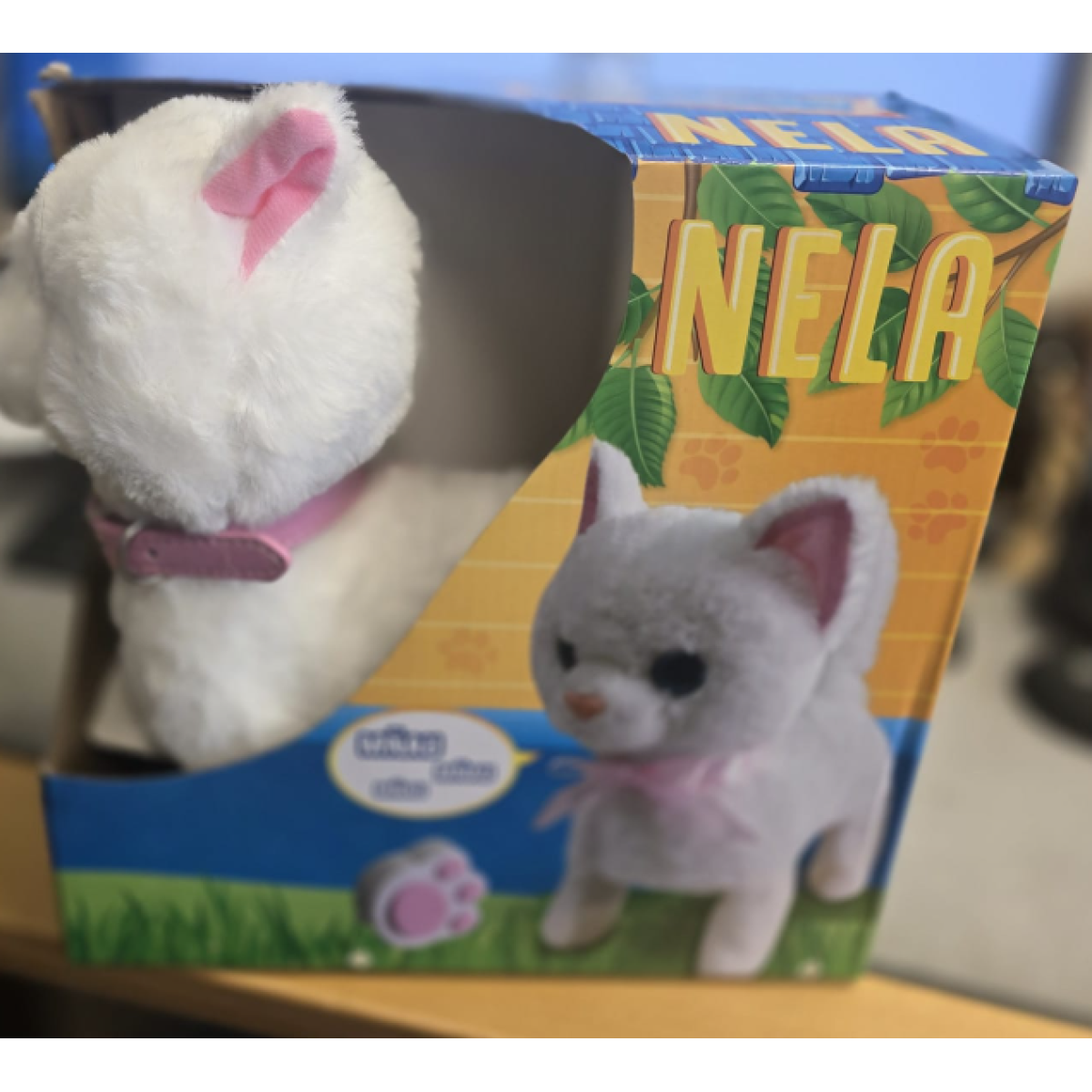 Interaktívna mačka Nela prináša deťom radosť z hry aj pocit, akoby mali vlastného domáceho miláčika. Stačí vziať do ruky diaľkové ovládanie a malá plyšová mačka začne ožívať – chodí, zastaví sa a otáča hlavičkou ako skutočné zvieratko.