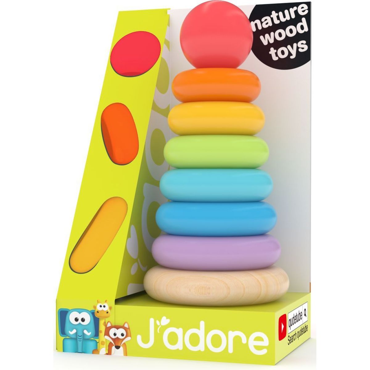 Každý z prúžkov má odlišnú farbu, deti sa ich môžu učiť pomenovať. J`adore je rad vzdelávacích hračiek pre najmenších, vyrobených z ekologicky udržateľného dreva, bez chemikálií.
