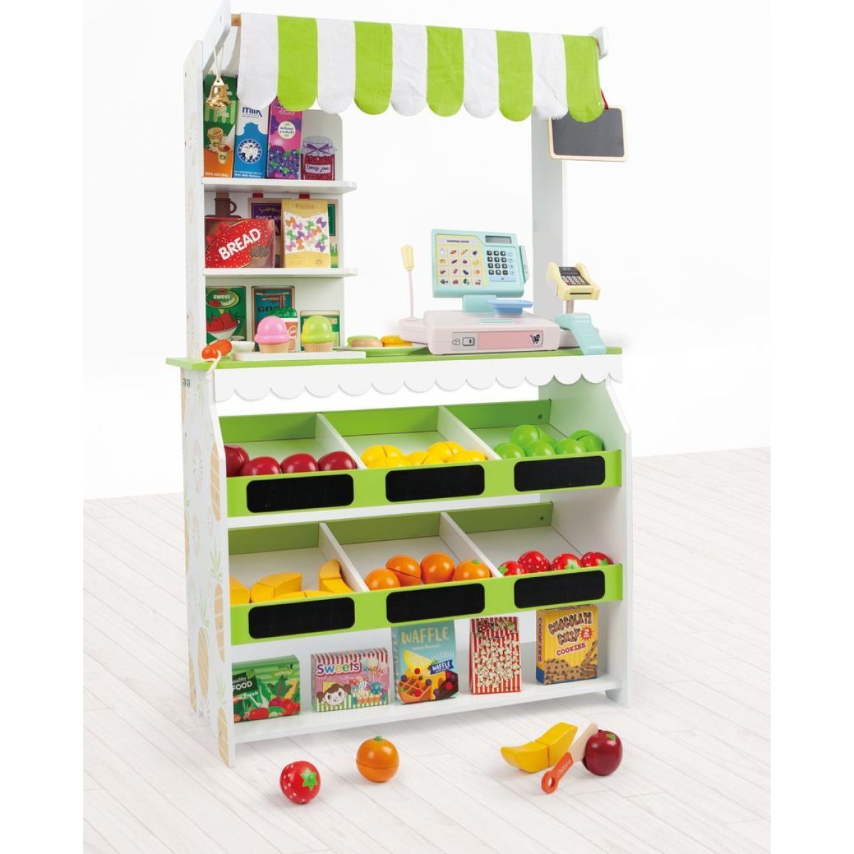 Drevený hrací set Obchod - potraviny poteší každé dieťa, ktoré si chce zahrať na predavača alebo zákazníka. Táto hračka podporuje jemnú motoriku a logické myslenie detí vďaka prírodnému materiálu a bezpečnému spracovaniu. S rozmermi 64,5 × 10,5 × 59 cm ponúka dostatok priestoru pre spoločné hry viacerých detí naraz. Skvelá voľba na rozvoj zručností aj kreativitu počas zábavy.