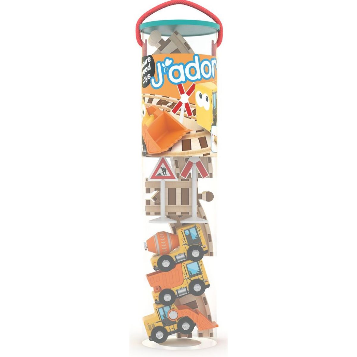 Potom ju doplnia o tematické autíčka a ďalšie príslušenstvo J`adore. Táto značka zašťiťuje rad vzdelávacích hračiek pre najmenších, vyrobených z ekologicky udržateľného dreva. Tentokrát je hrací set s námetom stavebných vozidiel.