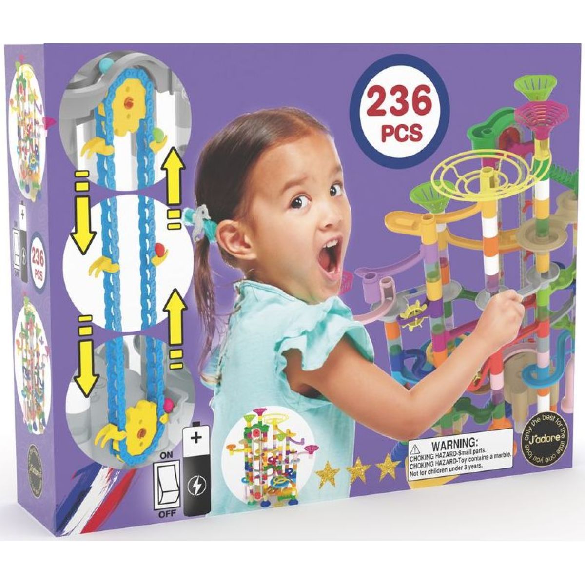 Veľká guľôčková dráha J'ADORE ponúka deťom hodiny tvorivej zábavy so svojimi 236 farebnými dielmi. Deti môžu skladať rôzne trate plné rýchlych zákrut, tunelov a zjazdov, kde sa guľôčky rýchlo preháňajú. Táto hračka podporuje rozvoj logického myslenia, priestorovej predstavivosti aj jemnej motoriky. Spoločne strávte príjemný čas pri stavbe tejto farebnej dráhy plnej možností.