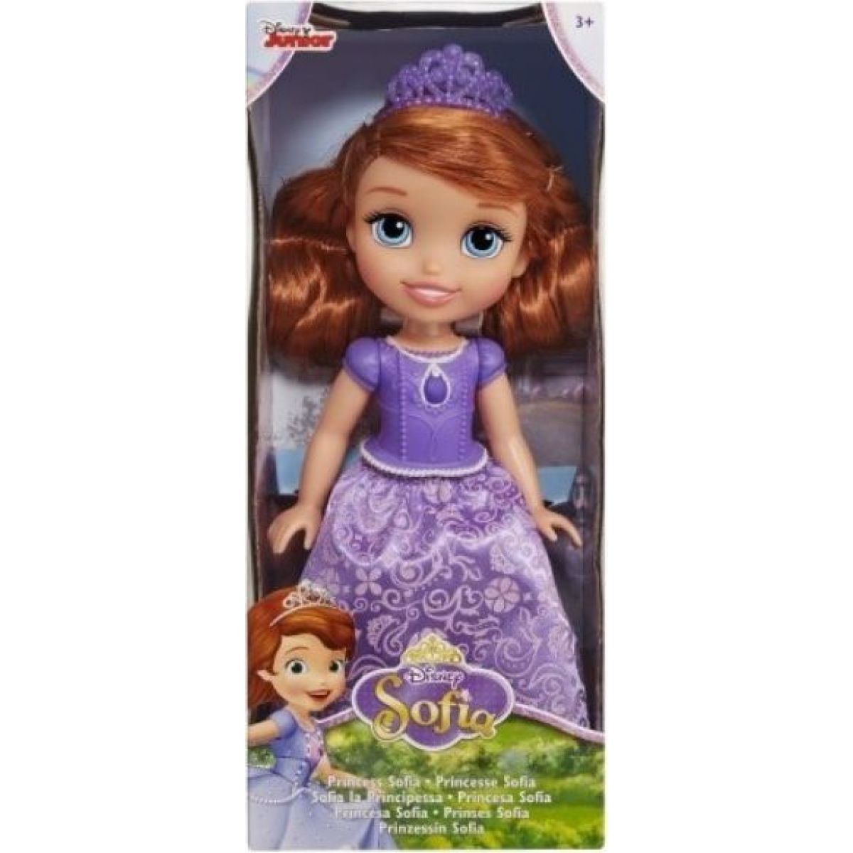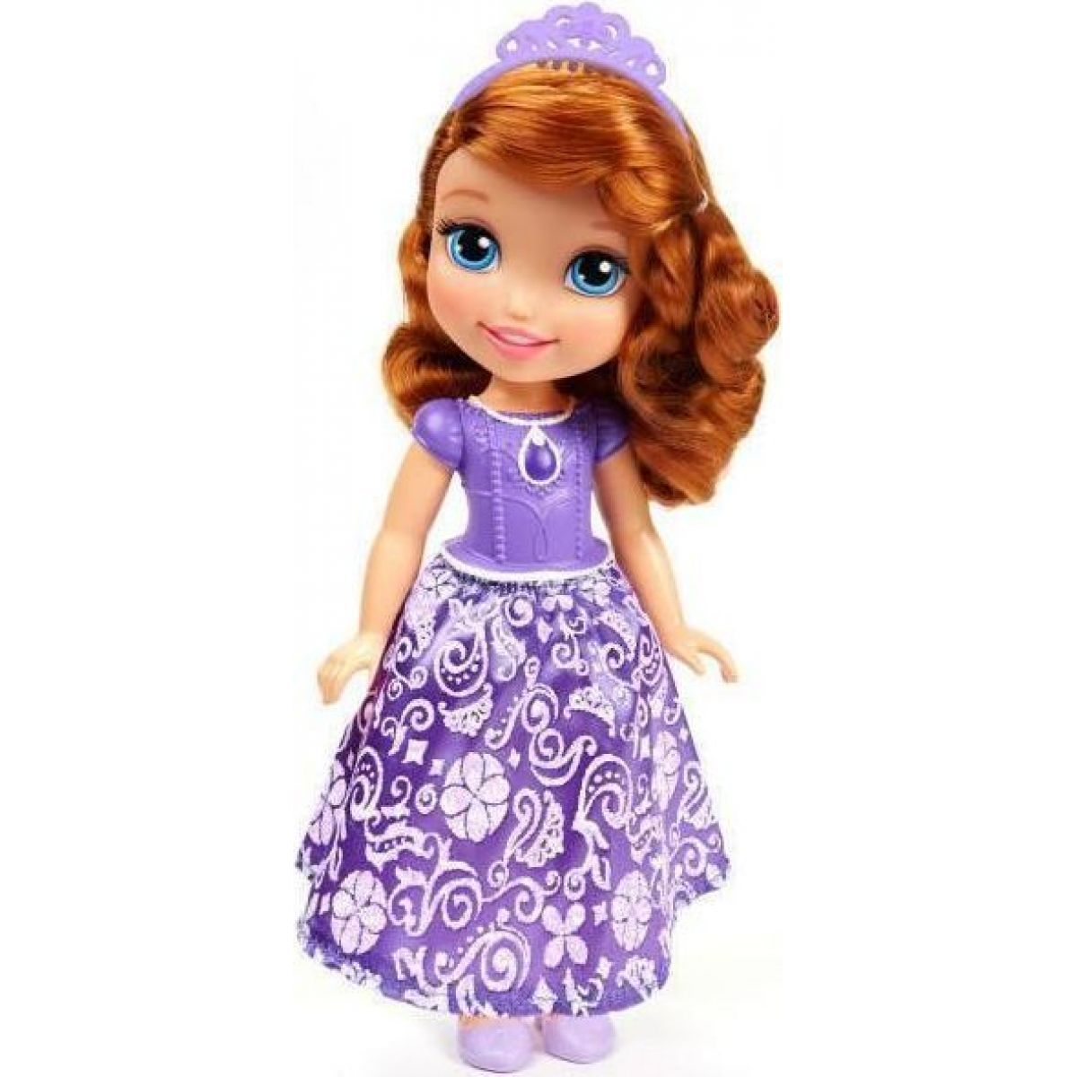 Princezna Sofie první v typických fialových šatech ze saténu s krásnými vzory je určena pro holčičky od 3 let. Na krku má náhrdelník s čarovným amuletem a její husté vlásky jsou zdobeny čelenkou. Její končetiny jsou pohyblivé, umožňují holčičkám s panenkou příjemné hraní.