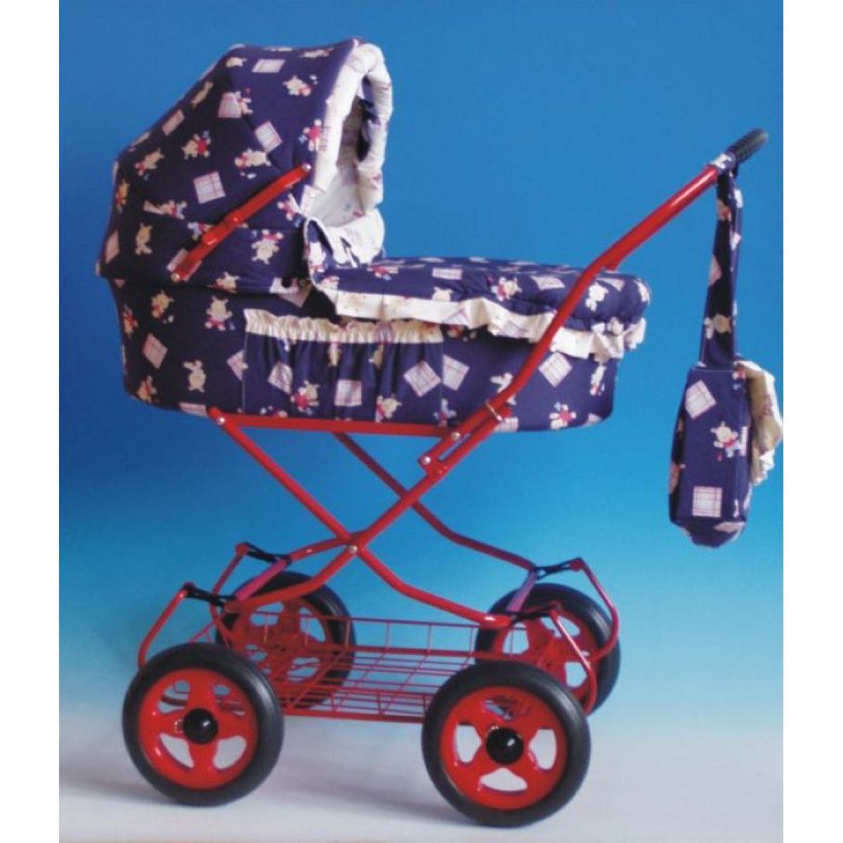 Kočárek na panenku (vypolstrovaný), součástí kočárku je taška na zavěšení.