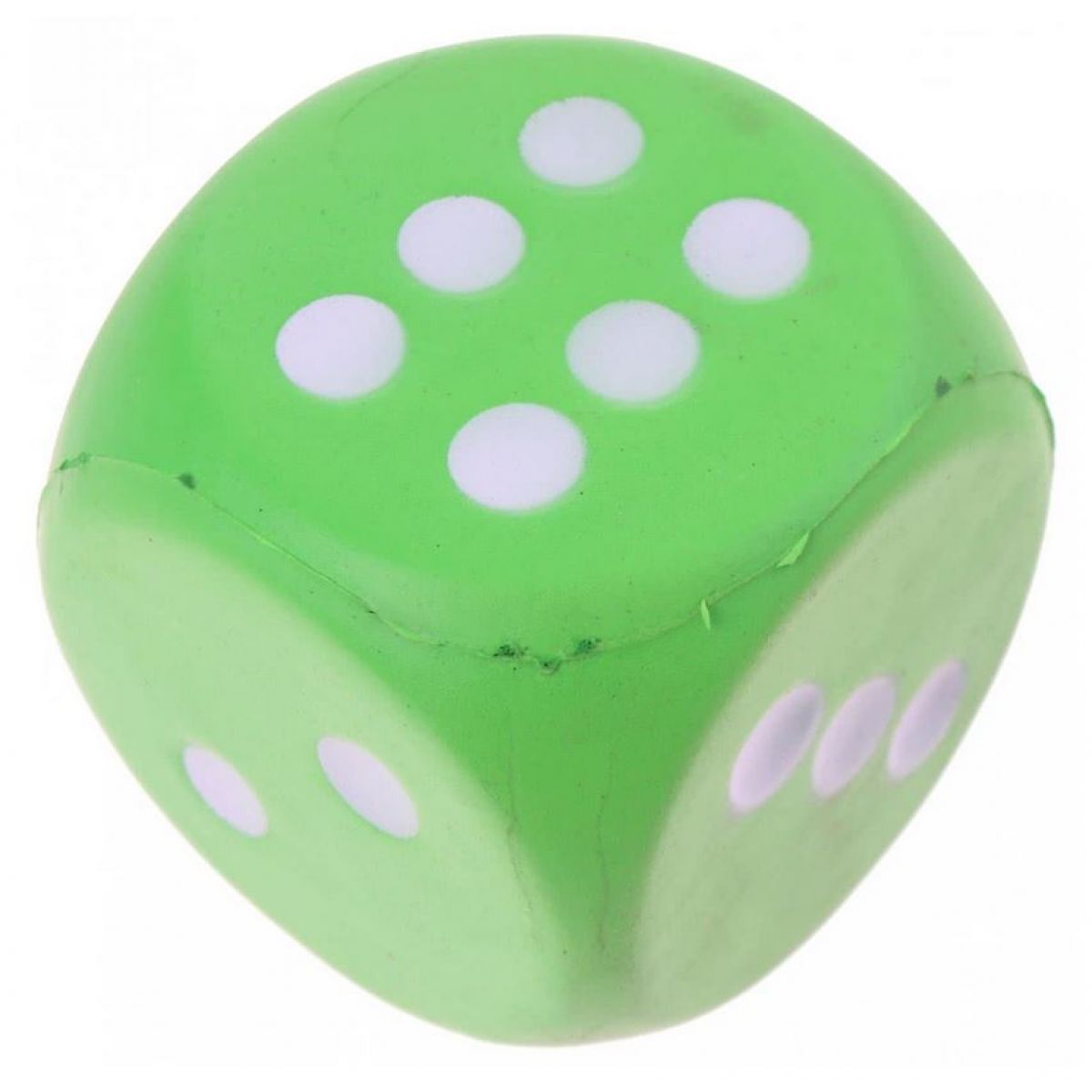 Zelená penová kocka je väčšia ako obvyklá kocka u stolných hier.