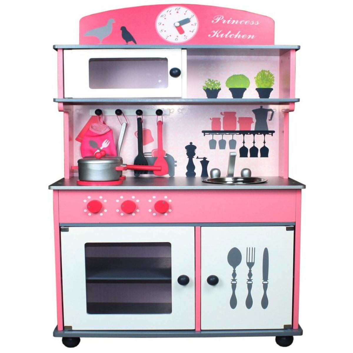 KidsHome Dětská kuchyňka s příslušenstvím 100cm (02051). Věk: 3+ Materiál: dřevo Rozměry: 60 x 30 x 100 cm