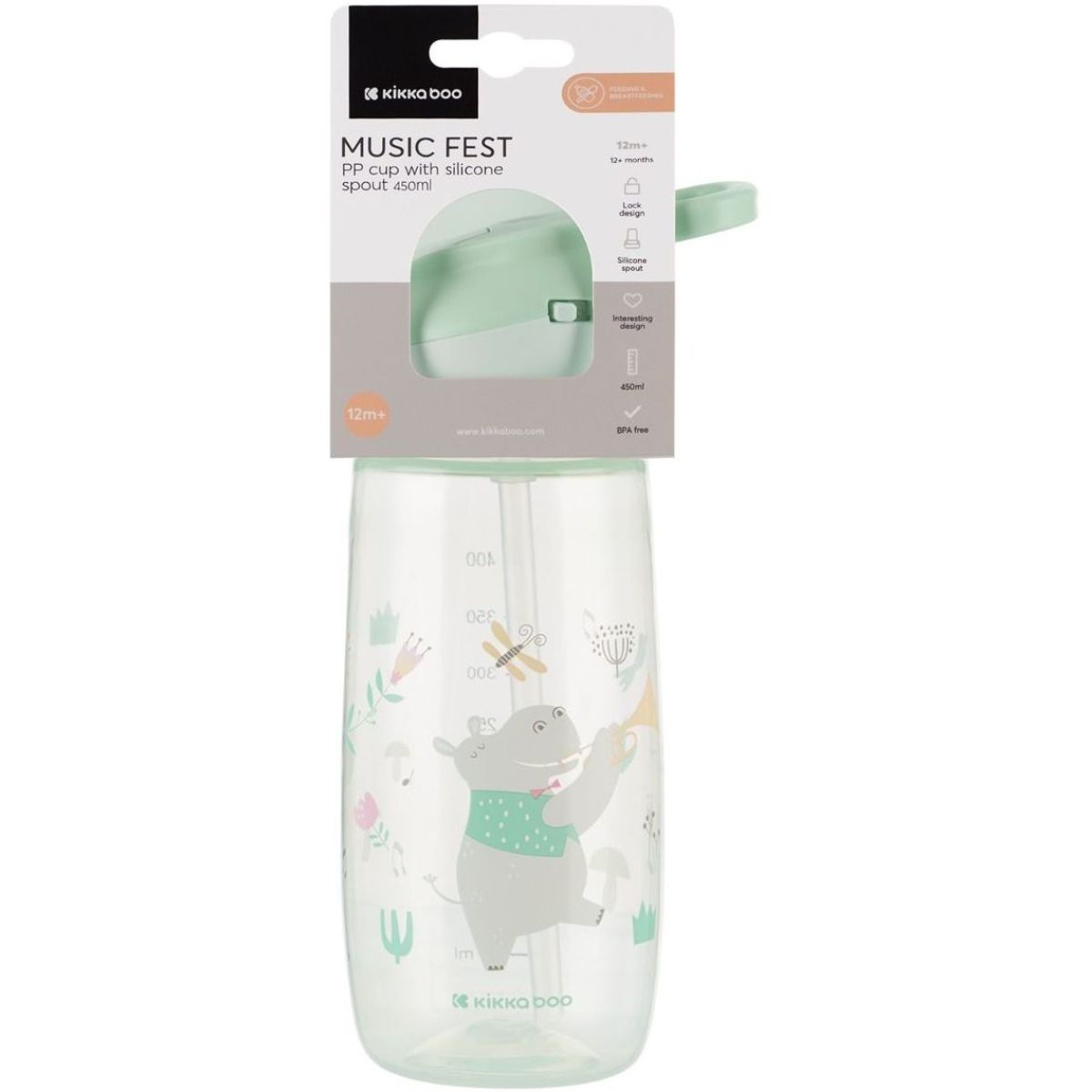 KikkaBoo Hrnček so silikónovým náustkom 450ml 12m+ Music Fest Mint