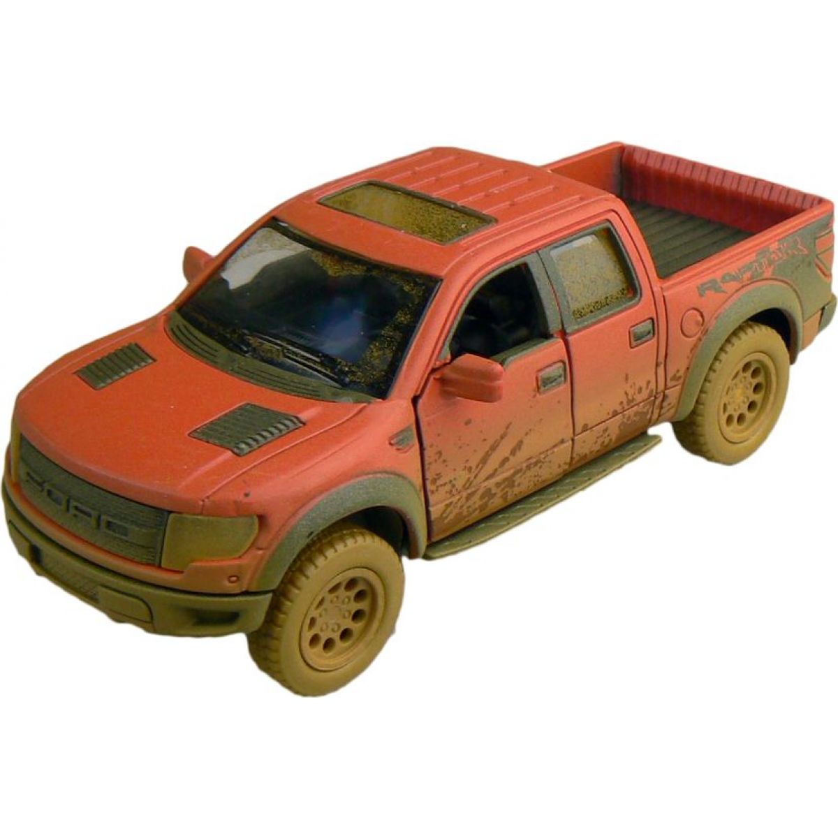 Červený Ford F-150 SVT Raptor monster truck, který se nezalekne překážek jako jsou hory, bahno, písek nebo sníh, je zpracován v měřítku 1:46. Model je kovový, má otevírací dveře a gumové pneumatiky. Pohonem je zpětné natažení.