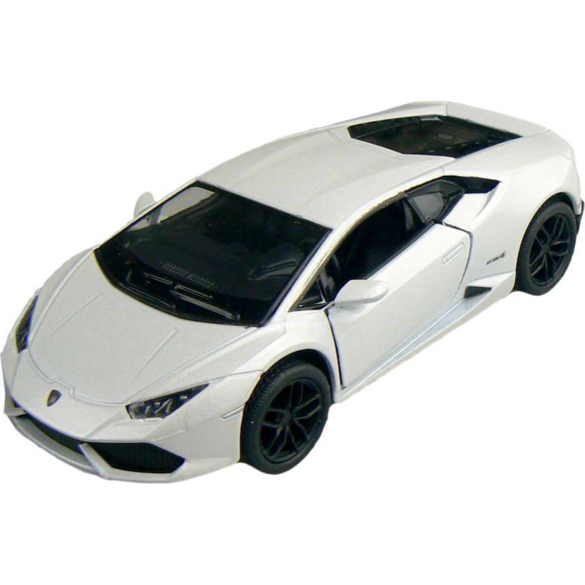 Kovový model sportovního vozu Lamborghini Huracan v měřítku 1:36. Auto má kovovou karosérii, otevírací dveře a gumové pneumatiky.