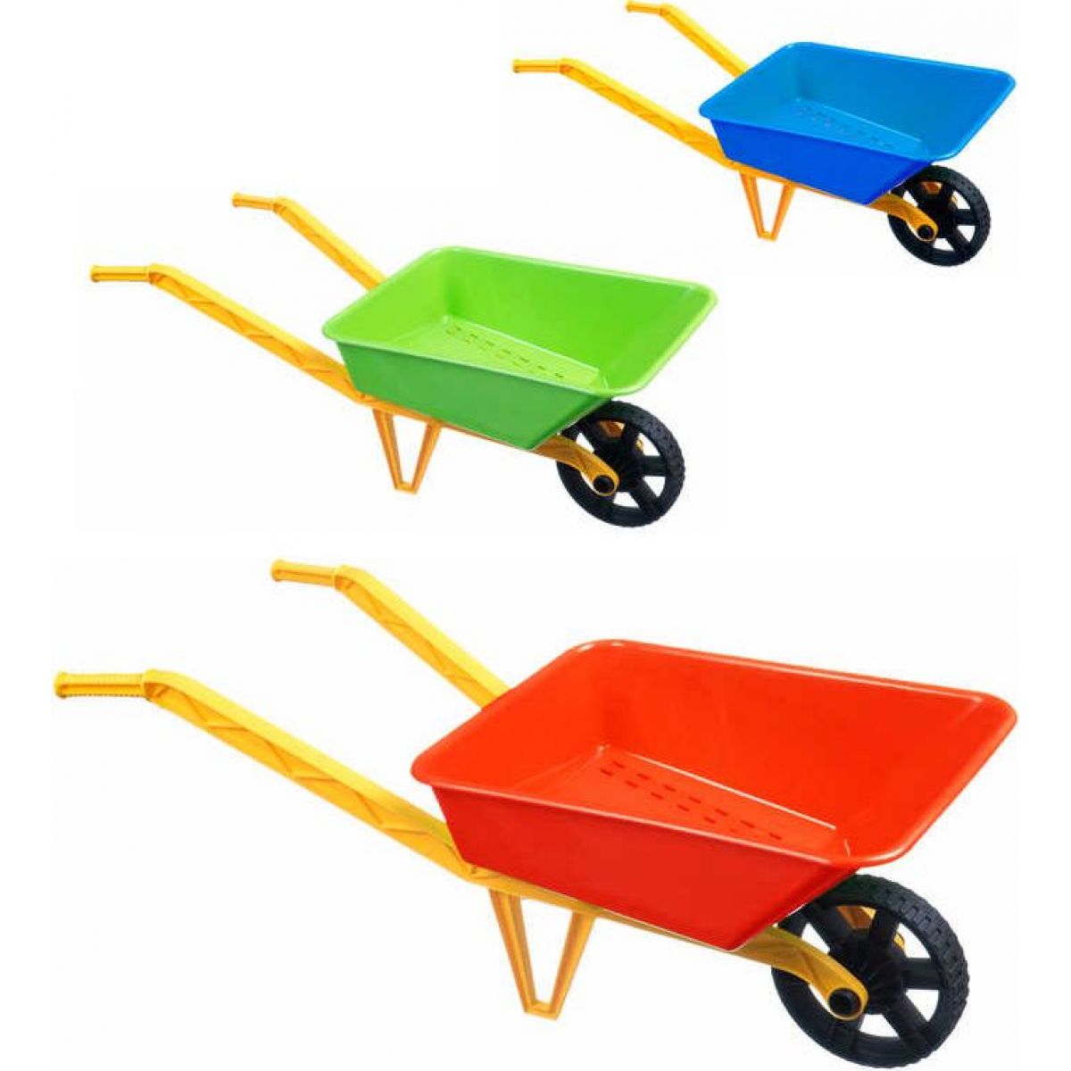 Detské zelené koliesko je určené pre dievčatá a chlapcov, ktorí radi pomáhajú na záhrade alebo pracujú na pieskovisku.