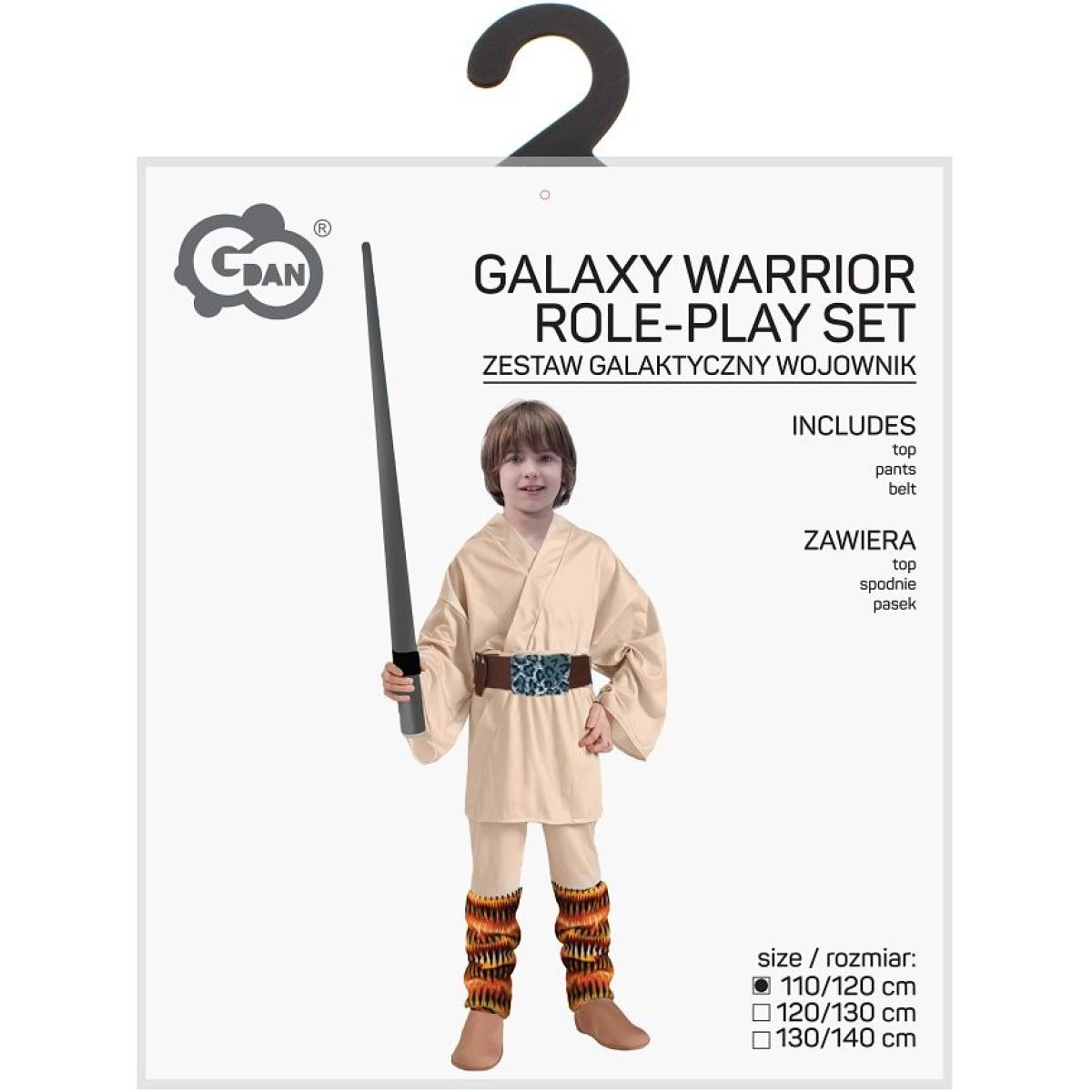Súčasť balenia: vrchný diel, nohavice, návleky, opasok, plastový svetelný meč