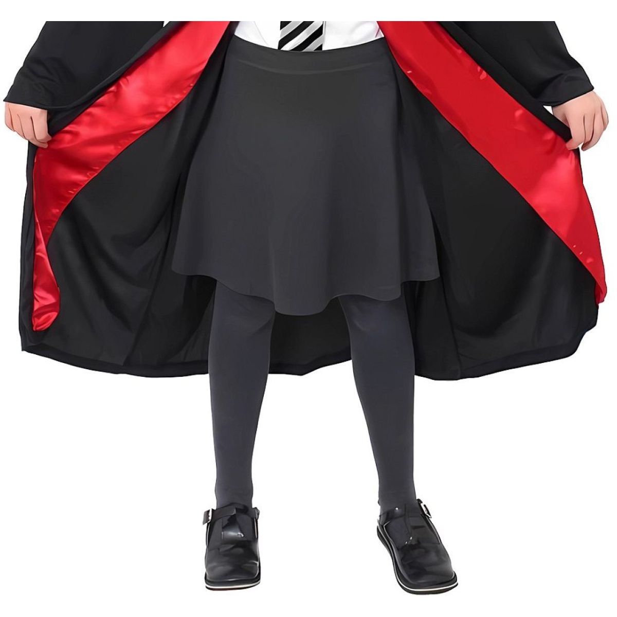 Čierny kúzelnícky plášť s výraznou červenou podšívkou pôsobí elegantne a magicky zároveň. Vďaka ľahkému materiálu a voľnému strihu sa pohodlne nosí a umožňuje deťom voľný pohyb. Praktické zapínanie pri krku zabezpečuje rýchle obliekanie.
