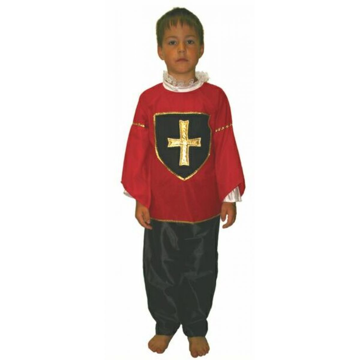 Kostým se skládá z černých kalhot a červené halenky se symbolem mušketýra, velikost S do výšky 120cm.