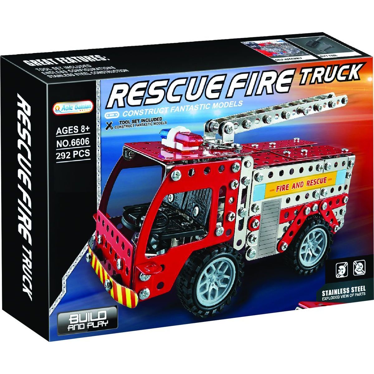 Prinášame vám dokonalý nástroj na rozvoj kreativity a technických zručností vašich detí – kovová stavebnica hasičského auta s 292 dielikmi.