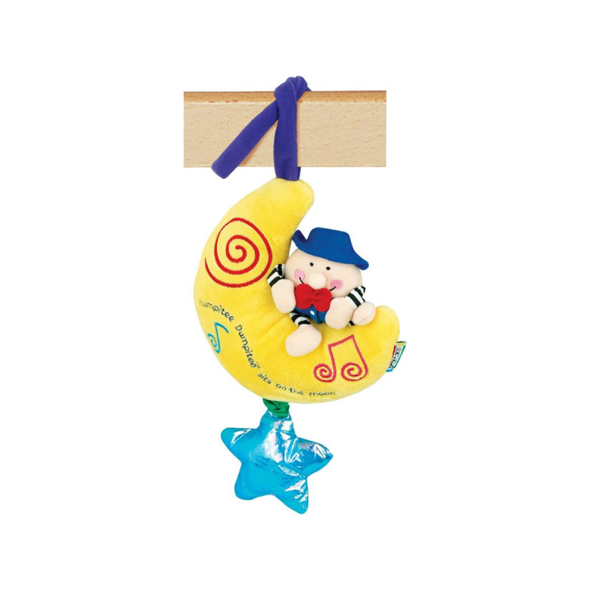 Látková hračka je vhodná na přivázání k postýlce miminek. Po natažení hvězdičky hraje.